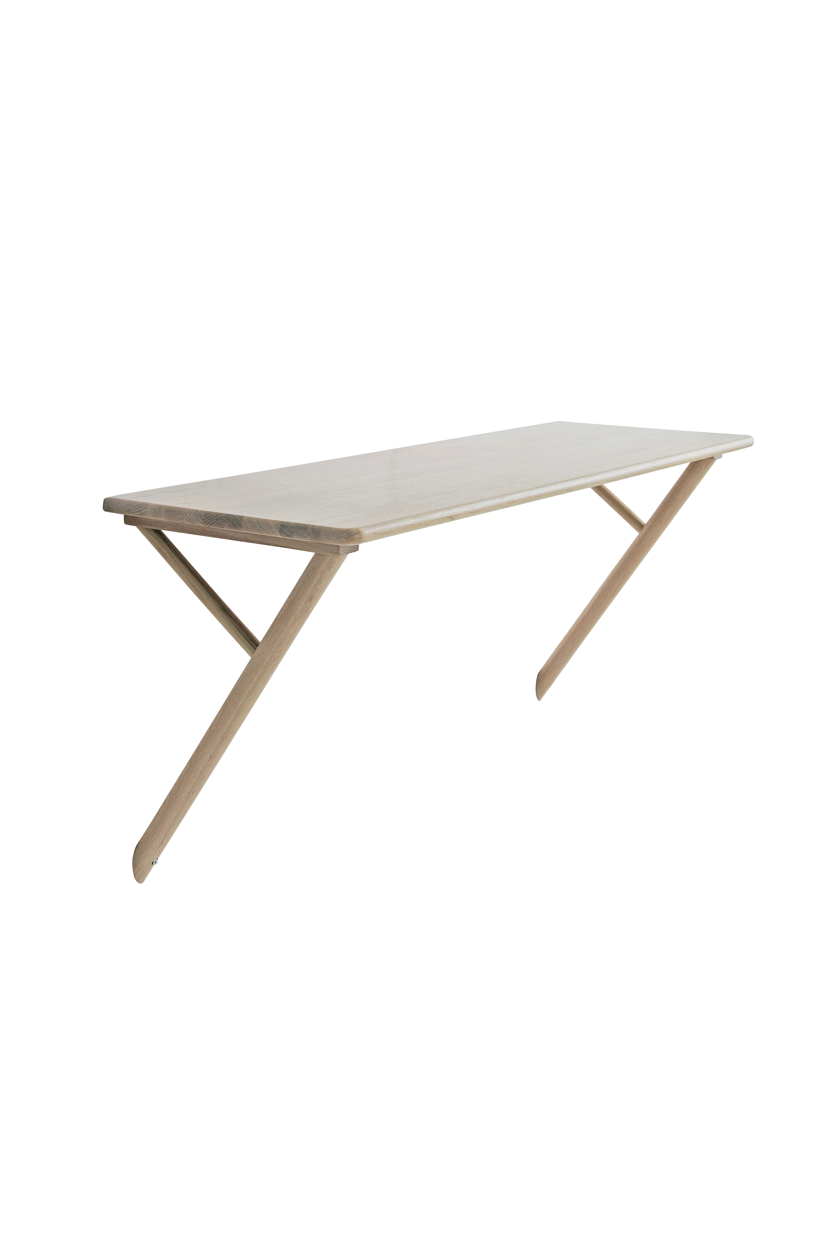 Seinään kiinnitettävä kirjoistuspöytä vaaleaksi käsiteltyä tammea. Kätevä malli, joka kiinnitetään seinään haluamallesi korkeudelle. Pöytä on tyylikäs ja pelkistetty - sulautuu hyvin muuhun sisustukseen. Kirjoituspöydän kiinnittäminen seinään on helppoa etukäteen porattujen reikien ansiosta.
