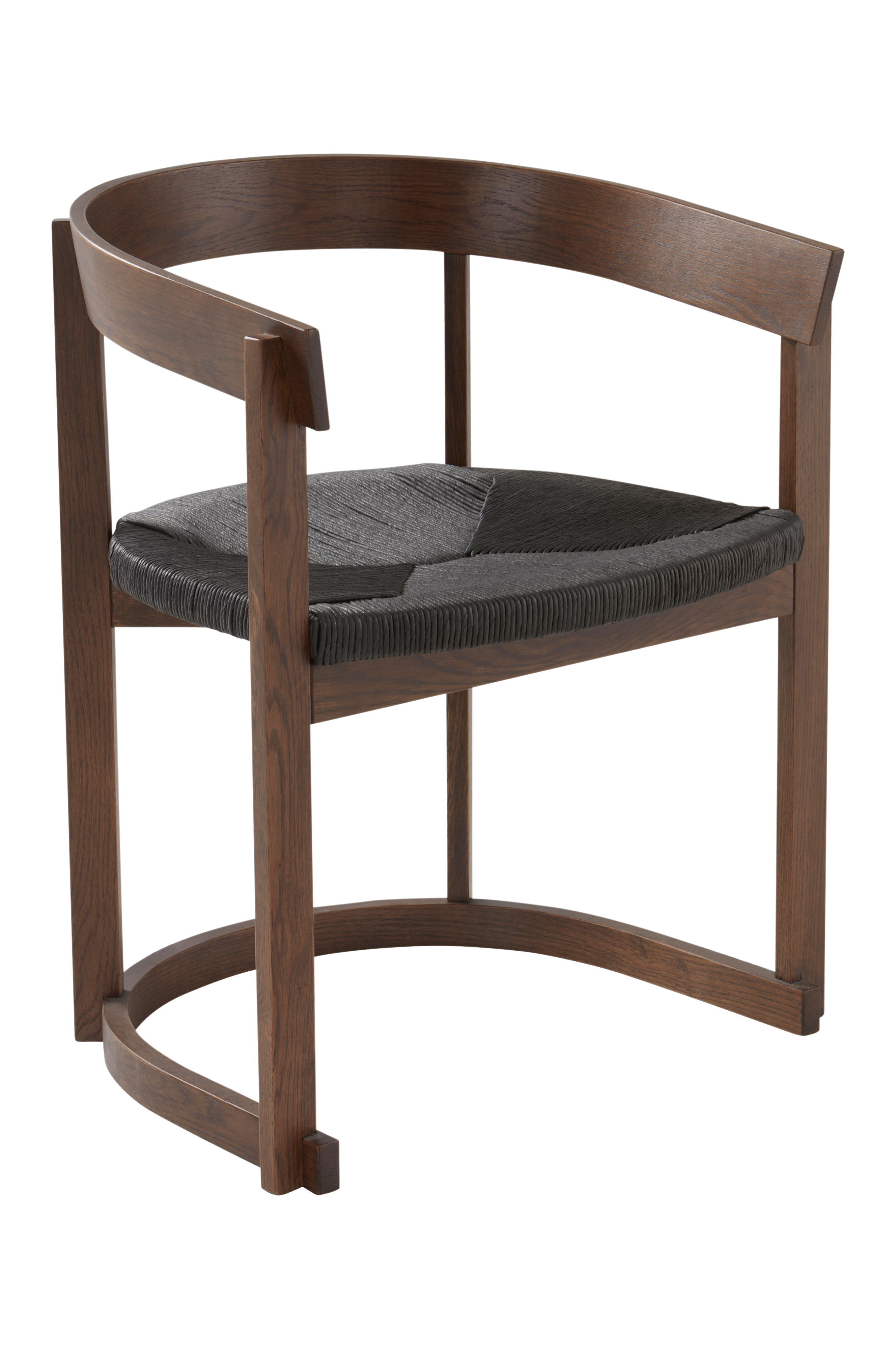 Tuoli on massiivitammi ja siinä on avoin muotoilu, jossa on pehmeä pyöristetty muoto. Puu on silitetty vesipohjaisella lakalla niin, että vilja säilyy ja antaa kauniin kuvion. Istuin on valmistettu paperijohdosta klassisessa punonnassa.
