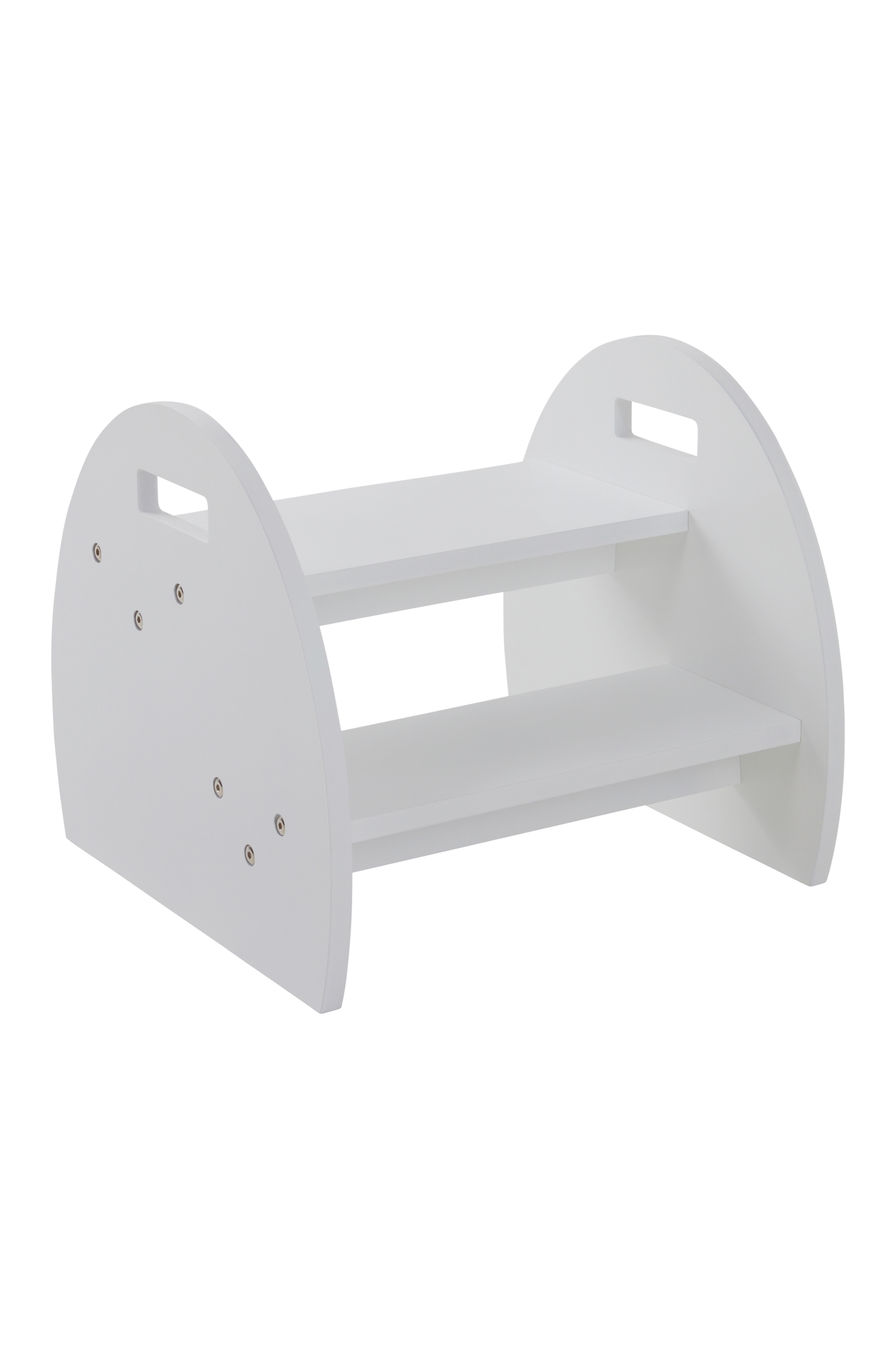 Lastenjakkara maalattua MDF-levyä. Jakkara on hyvä apuväline lapselle, jotta hän ylettyy hieman korkeammalle, täydellinen hampaita pestessä tai silloin, kun lapsi haluaa auttaa tiskauksessa ja ruoanlaitossa. Jakkara on vakaa, ja yhden askelman ansiosta sille on helppo nousta. Askelma tulee lähelle keittiön kaappia tai lavuaaria, joten lapsi pääsee tarpeeksi lähelle. Sivuilla on nelikulmaiset reiät, joten jakkaraa on helppo siirtää. Jos lapsi istuu ylimmällä tasolla, hän saa jalat askelmalle. Osittain koottava. Kokoamisohje mukana.