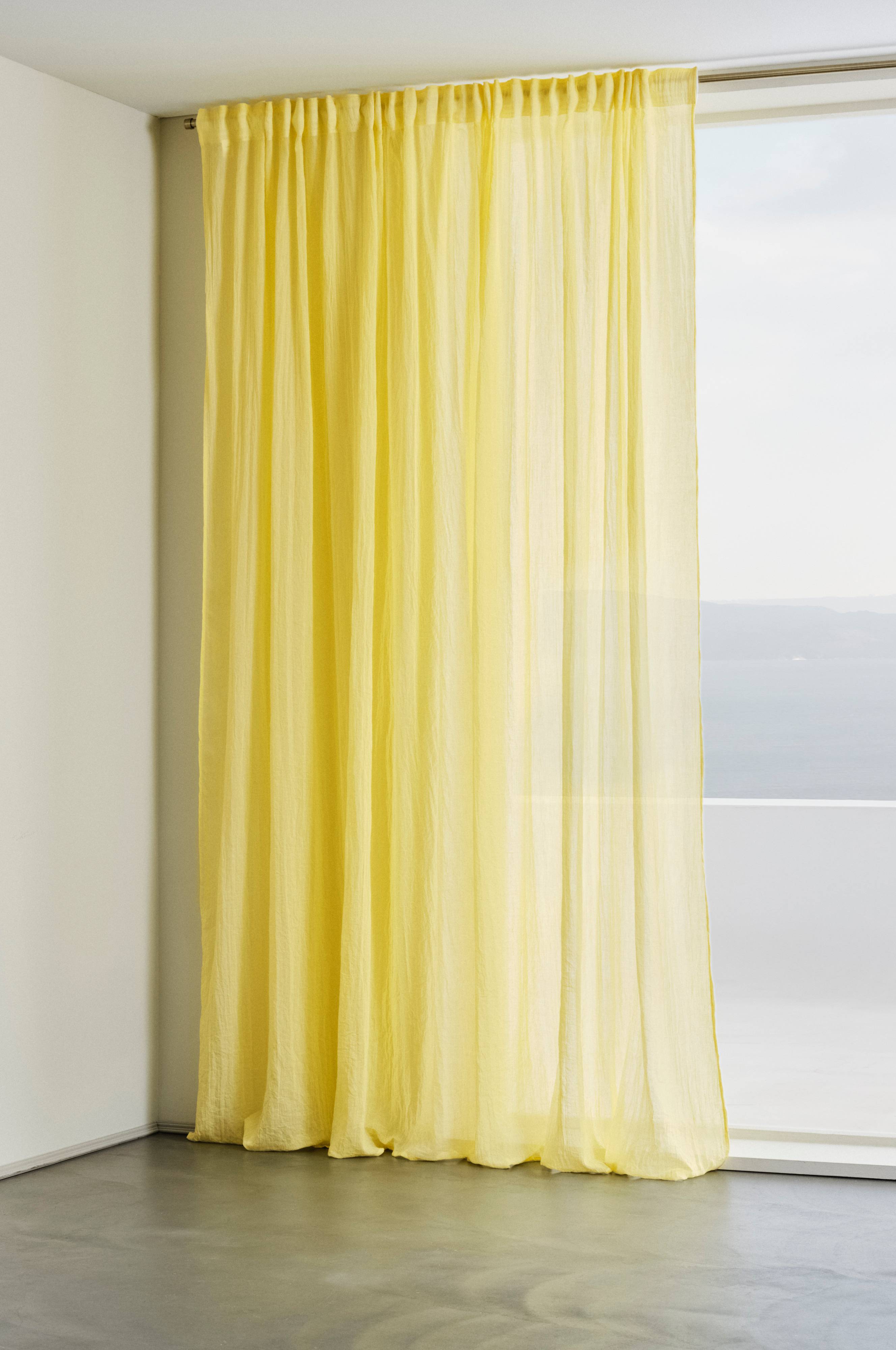 Erittäin leveä sivuverho läpikuultavaa ja ilmavaa, kevyesti laskeutuvaa polyesteri-puuvillasekoitetta. Päälleommeltu monitoiminauha. Verhon voi ripustaa sormikoukkujen, kujan tai piilolenkkien avulla.