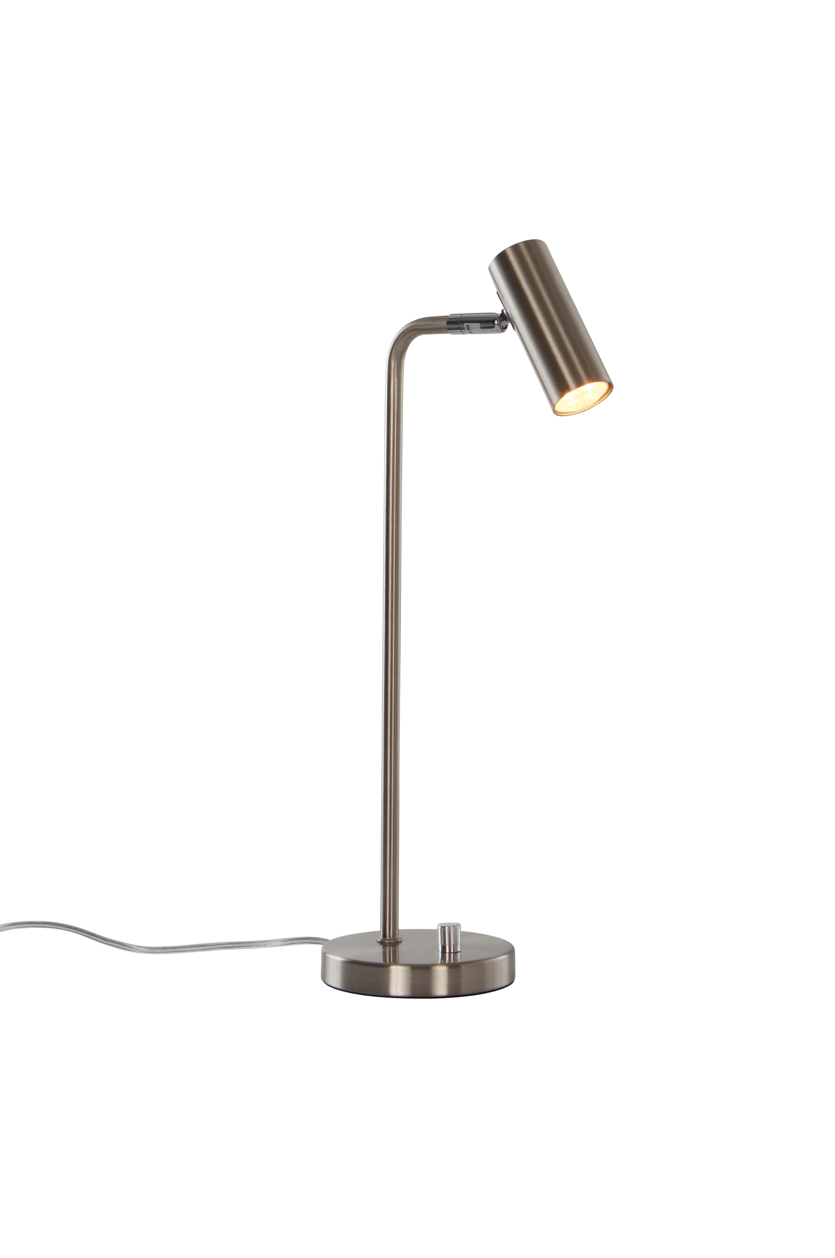 Metallinen pöytävalaisin, jossa himmennin. Tyylikäs ja moderni valaisin on helppo sijoittaa. Läpikuultava johto, johdon pituus 1,7 m.