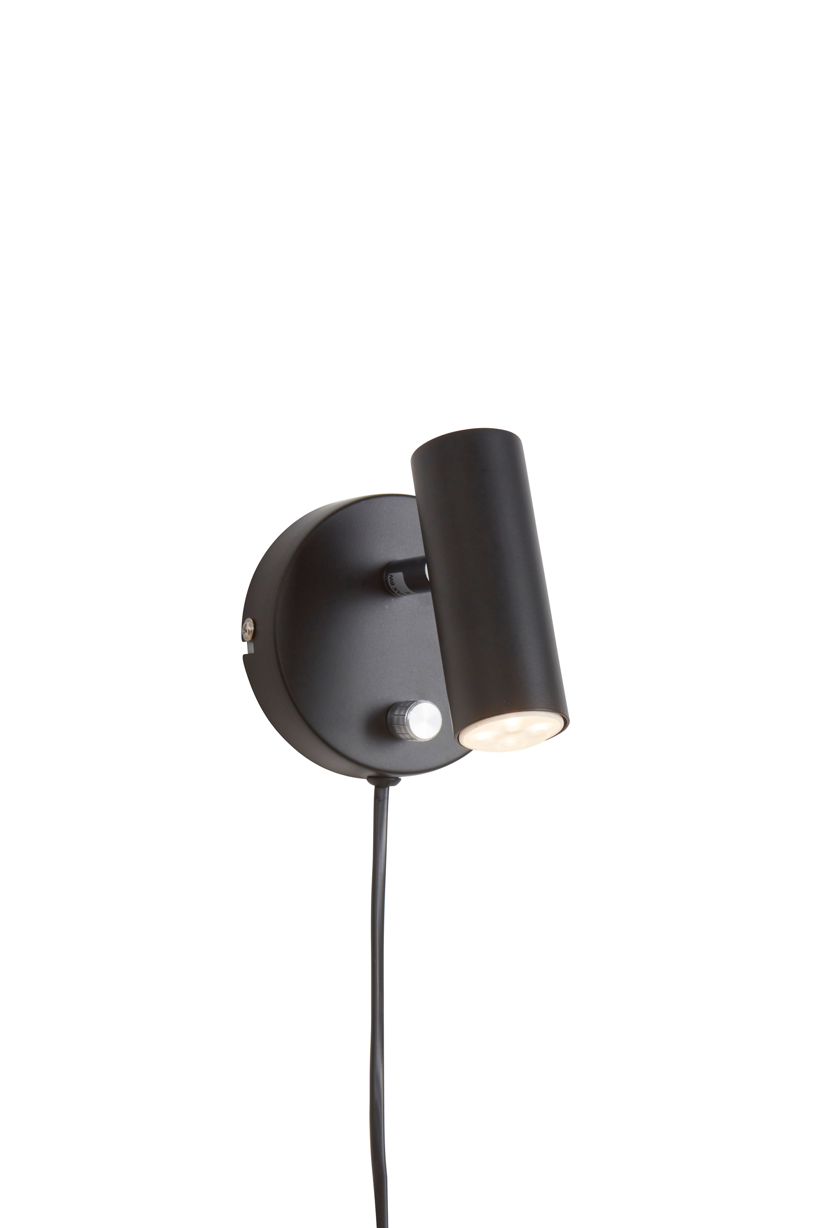 Seinävalaisin metallia, mukana LED-lamppu. Säädettävä lampunpidike, jossa himmennin/virtakytkin seinälevyssä. Yksivärinen ulkopinta ja krominväriset yksityiskohdat. Muovijohto 170 cm.