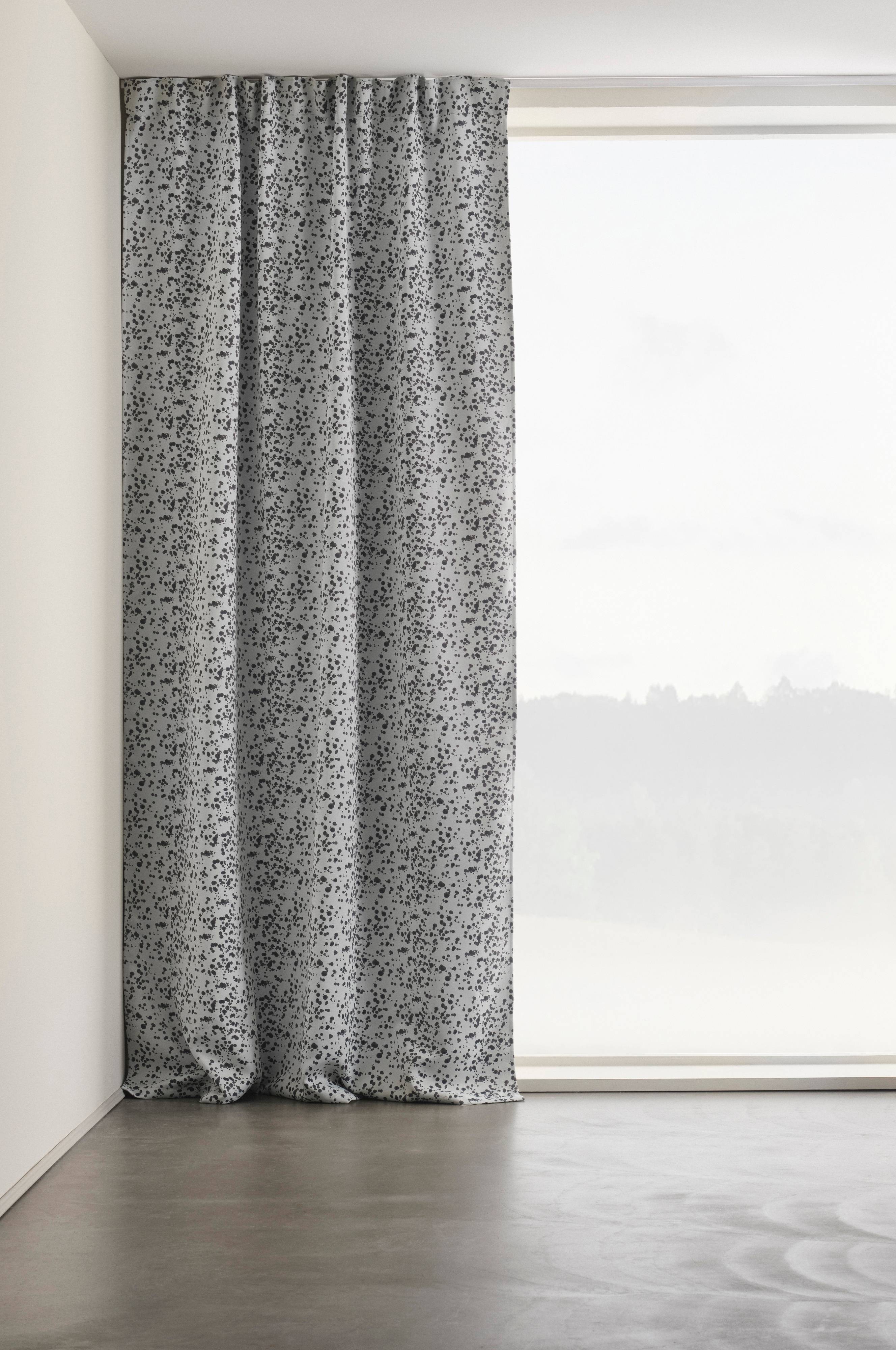 LETICIA on pimennysverhon pituus. Verhopituus on valmistettu polyesteristä ja puolet on kierrätysmateriaalia. Vahva kangas estää valoa ja pimentää lastenhuoneen, makuuhuoneen tai tv-huoneen. Pituudessa on pistemäinen roiskekuvio vaaleassa alareunassa huoneen suuntaan ja takana valoa estävä pinnoite.