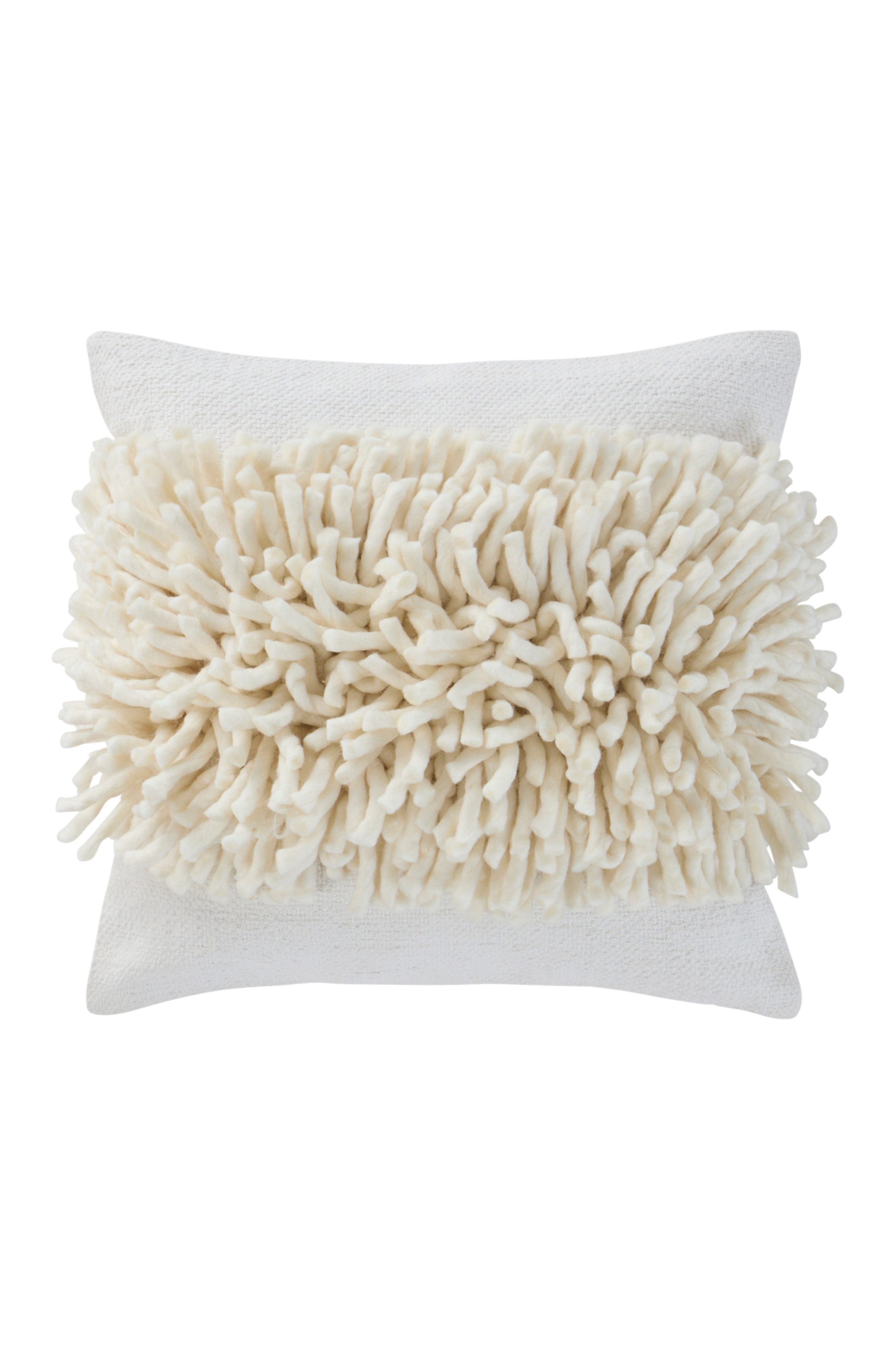 Tyynynpäällisessä on moderni, huomiota herättävä rakenne, jossa on käsinkudottua villaa ja pitkä nukka. Selkäosa on valmistettu tukevasta kankaasta, jossa on kätevä vetoketju. Tämä sekoitus lisää hienostunutta charmia mihin tahansa trendikkääseen ympäristöön.
