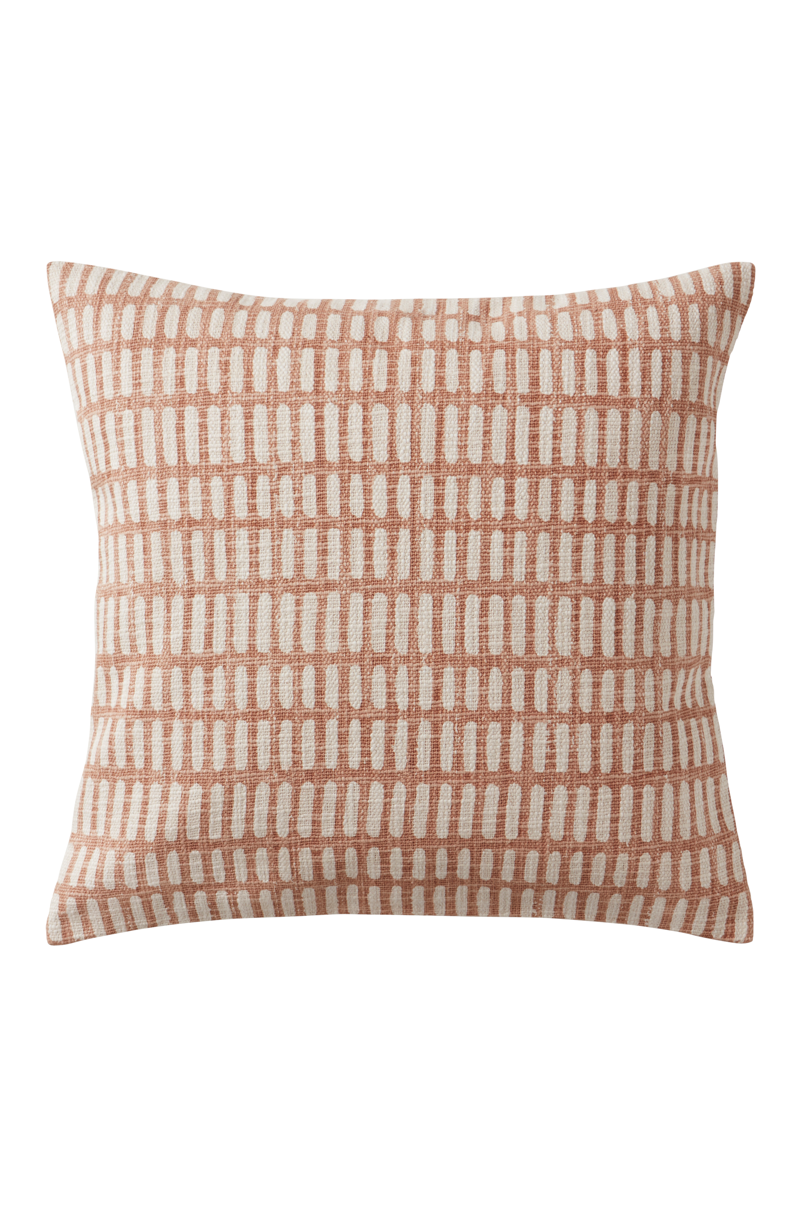Tyynynpäällinen puuvillaa, 1/pakkaus. Tyynynpäällisen etupuoli paksuhkoa, eläväpintaista kangasta, jossa kaunis painettu kuvio. Luonnonvärinen, kevyesti meleerattu takaosa, jossa piilovetoketju. Etupuoli on vuorattu samalla kankaalla, kuin mitä on tyynynpäällisen takana.