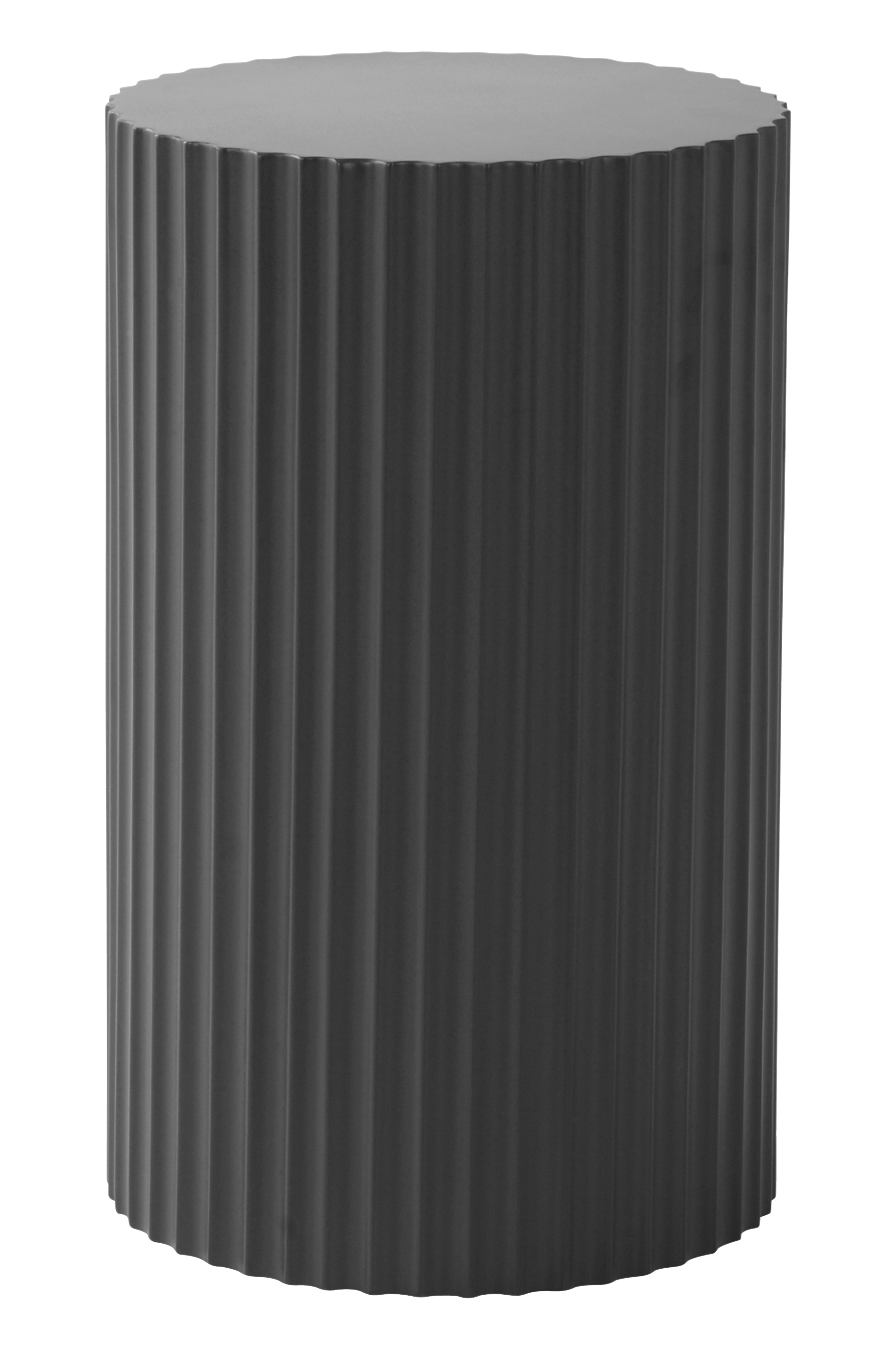 Pyöreä sivupöytä FSC-merkittyä, mattapintaiseksi maalattua MDF-levyä. Sileä pöytälevy ja uurrettu sivu pöydän ympäri. Matalahko pöytä sopii kauniisti sohvan viereen tai yöpöydäksi.