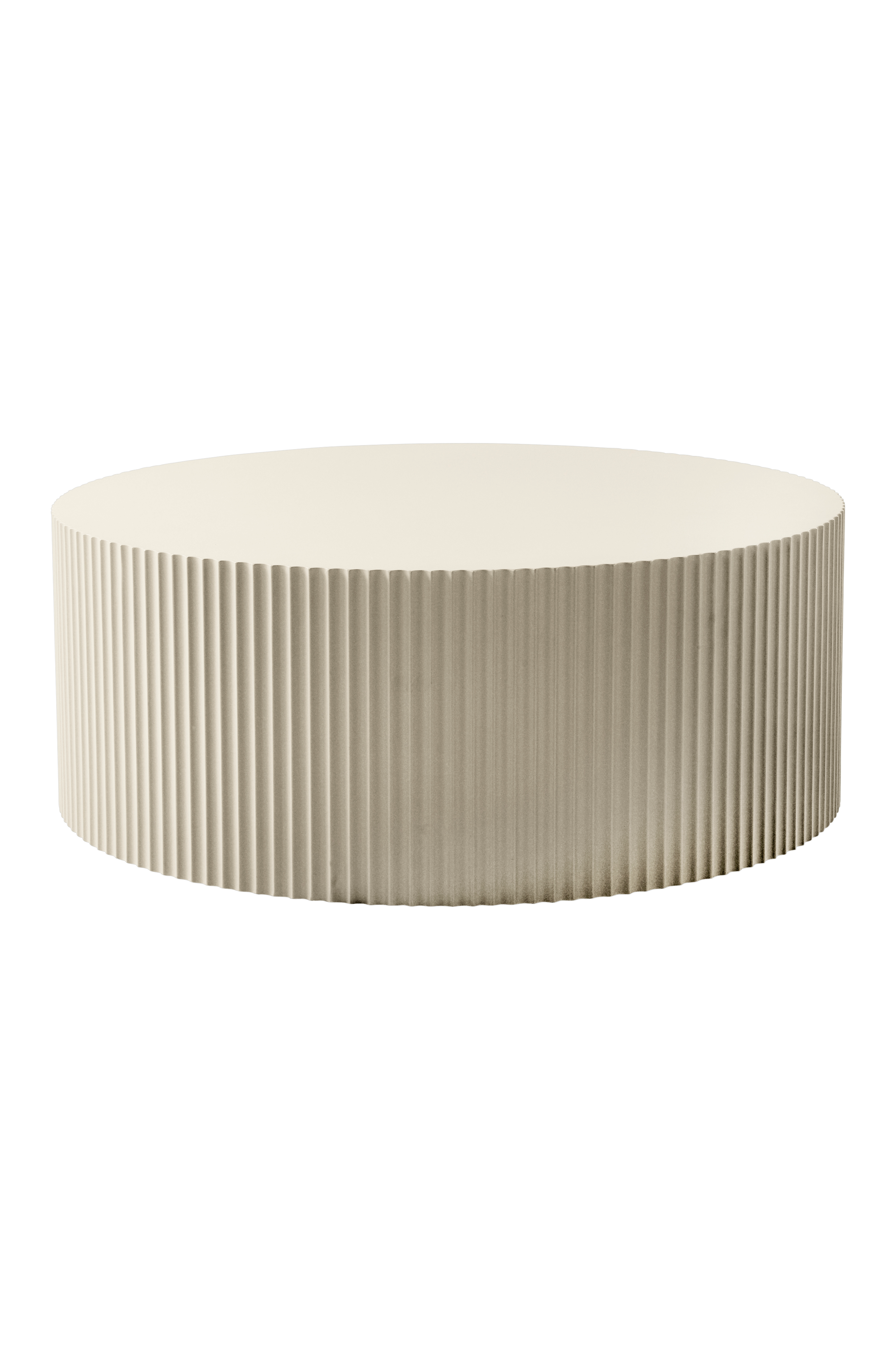 Pyöreä sohvapöytä FSC-merkittyä, mattapintaiseksi maalattua MDF-levyä. Sileä pöytälevy ja uurrettu sivu pöydän ympäri.