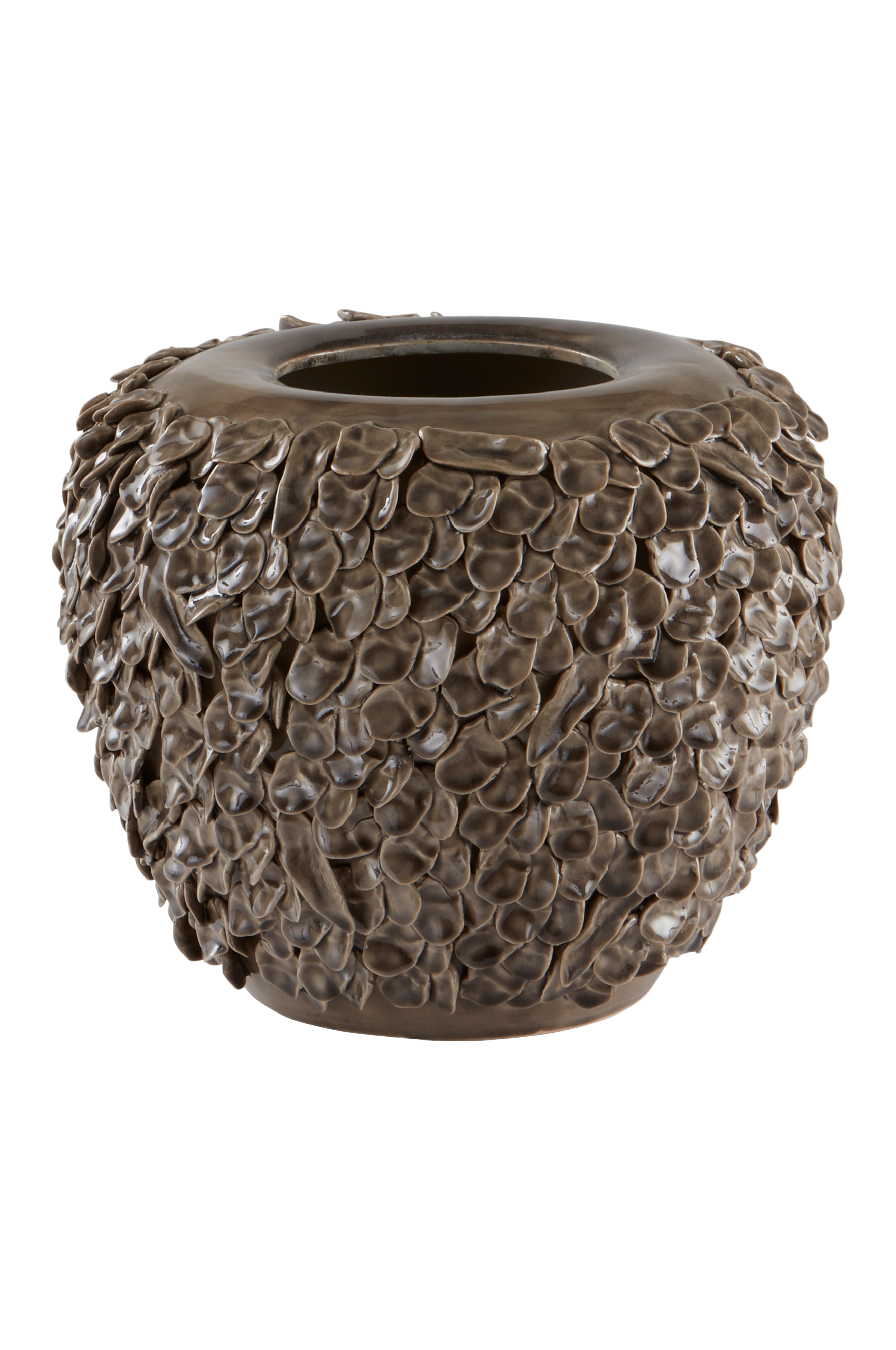Käsintehty maljakko keramiikkaa, jossa värikäs, kiiltävä lasite. Maljakossa on pieniä epäsäännöllisiä terälehtiä, jotka on kaikki käsin aseteltu. Tarkkaa käsityötä. Lasitettu sisäpinta. Käsintehdyissä maljakoissa voi esiintyä pieniä eroavaisuuksia. Keramiikka voi päästää kosteutta läpi.