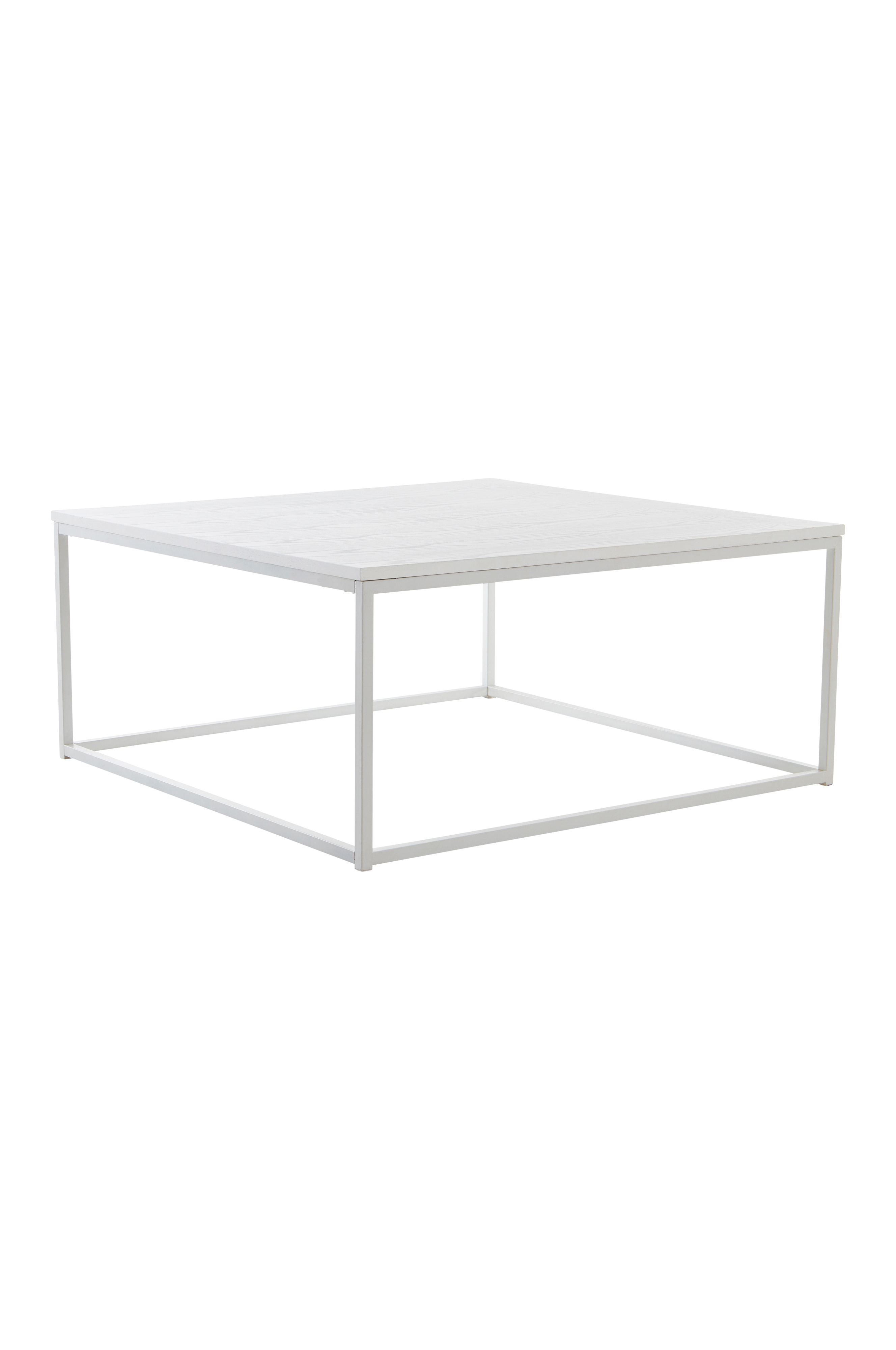 Neliön muotoinen sohvapöytä, jossa teräsrunko. Pöytälevy MDF-levyä ja saarniviilua. Pöytälevyssä on vesipohjainen lakka, ja teräsrunko on jauhemaalattu. Pöydässä on yksinkertaisen tyylikäs muotoilu, joka sopii hyvin muuhun sisustukseen. Osittain koottava. Kokoamisohje mukana.