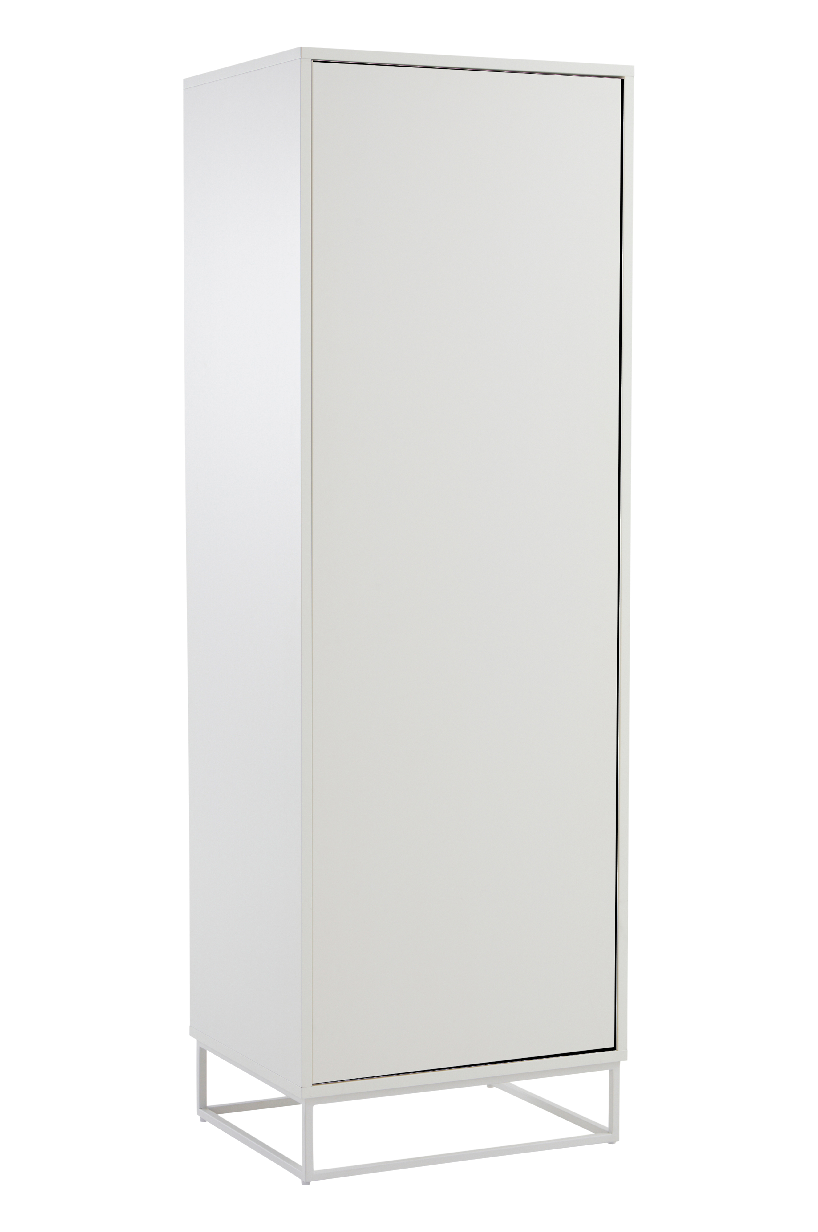 Vaatekaappi MDF-levyä, metallijalusta. Pelkistetyn linjakkaan vaatekaapin ovessa on push-toiminto. Sen ansiosta kaapin pinta on täysin sileä ja ovi avautuu vaivattomasti ilman vedintä. Vaatekaapin sisällä on vaatetanko massiivipyökkiä ja yksi kiinteä hyllytaso. Saranat ovat vasemmalla puolella. Oven kätisyys voidaan vaihtaa, mutta ota huomioon, että vasemmalle puolelle jää reiät. MDF-levystä valmistetut osat on käsitelty vesiohenteisella lakalla. Nelikulmainen jalusta on jauhemaalattu. Seinäkiinnikkeiden ansiosta vaatekaappi voidaan kiinnittää seinään tarvittaessa. Osittain koottava. Kokoamisohje mukana.