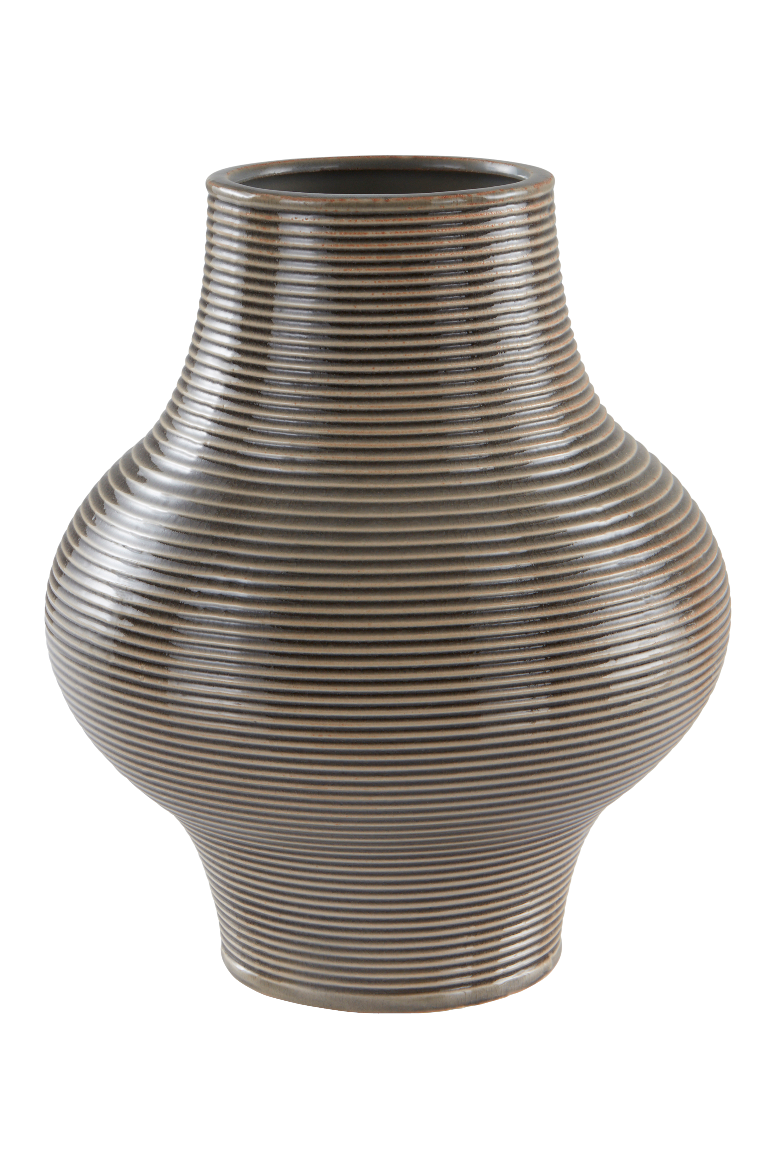 Käsintehty keramiikkamaljakko. Maljakossa on pehmeä pyöristetty muoto ja kapeat, vaakasuorat struktuuriraidat. Koko maljakko on lasitettu miellyttävän sävyiseksi. Myös sisäpinta on lasitettu. Kaunis käsityö tekee jokaisesta maljakosta yksilöllisen. Huomaa, että keramiikka voi päästää kosteutta läpi.