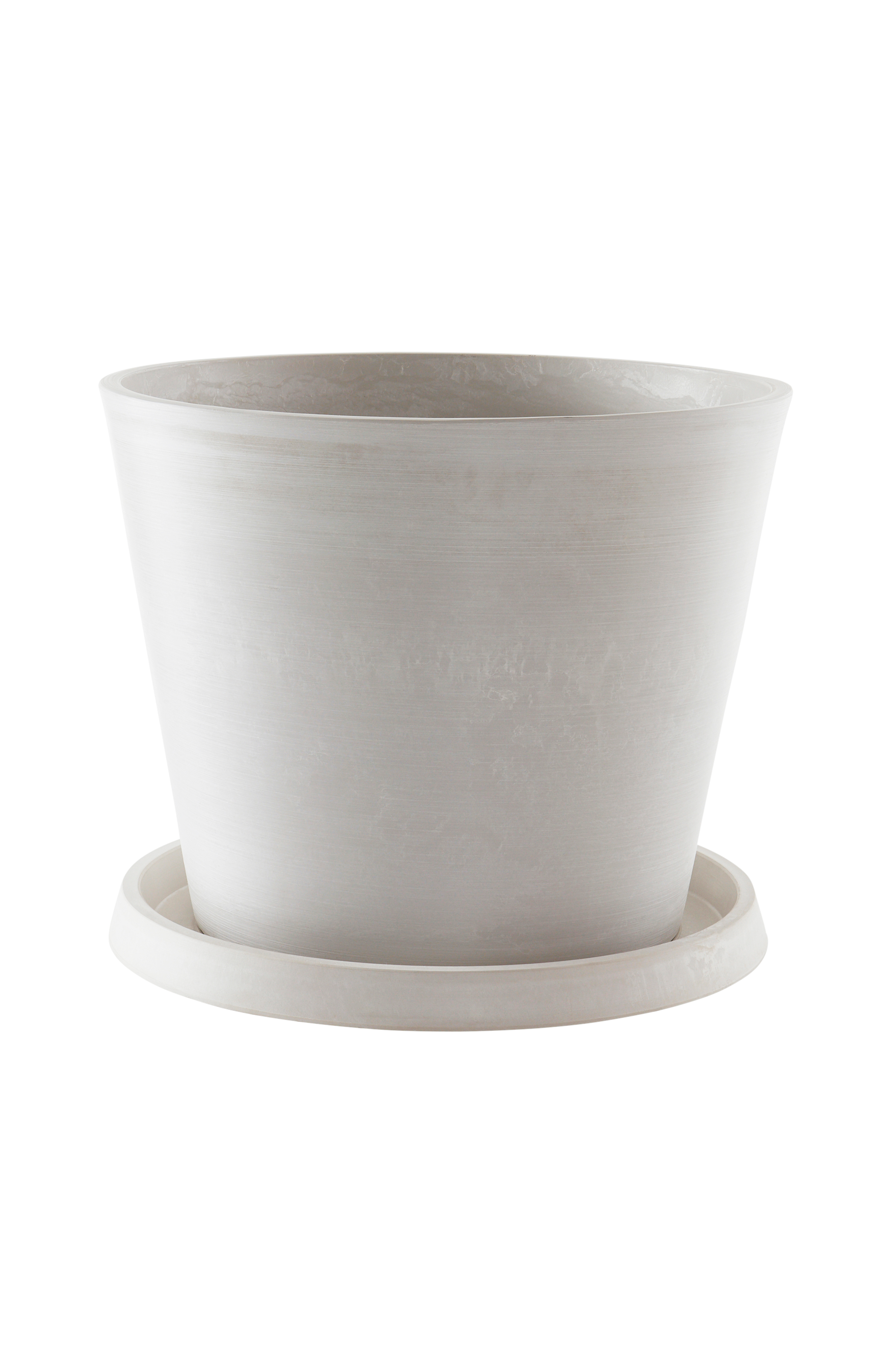 Ruukku ja lautanen suorassa, tyylikkäässä mallissa erittäin kevyestä ja kestävästä materiaalista, joka toimii sekä sisällä että ulkona. Ruukku ja lautanen ovat sään- ja pakkasenkestäviä, ne eivät haalistu auringonvalossa ja ovat myös kierrätettävissä.