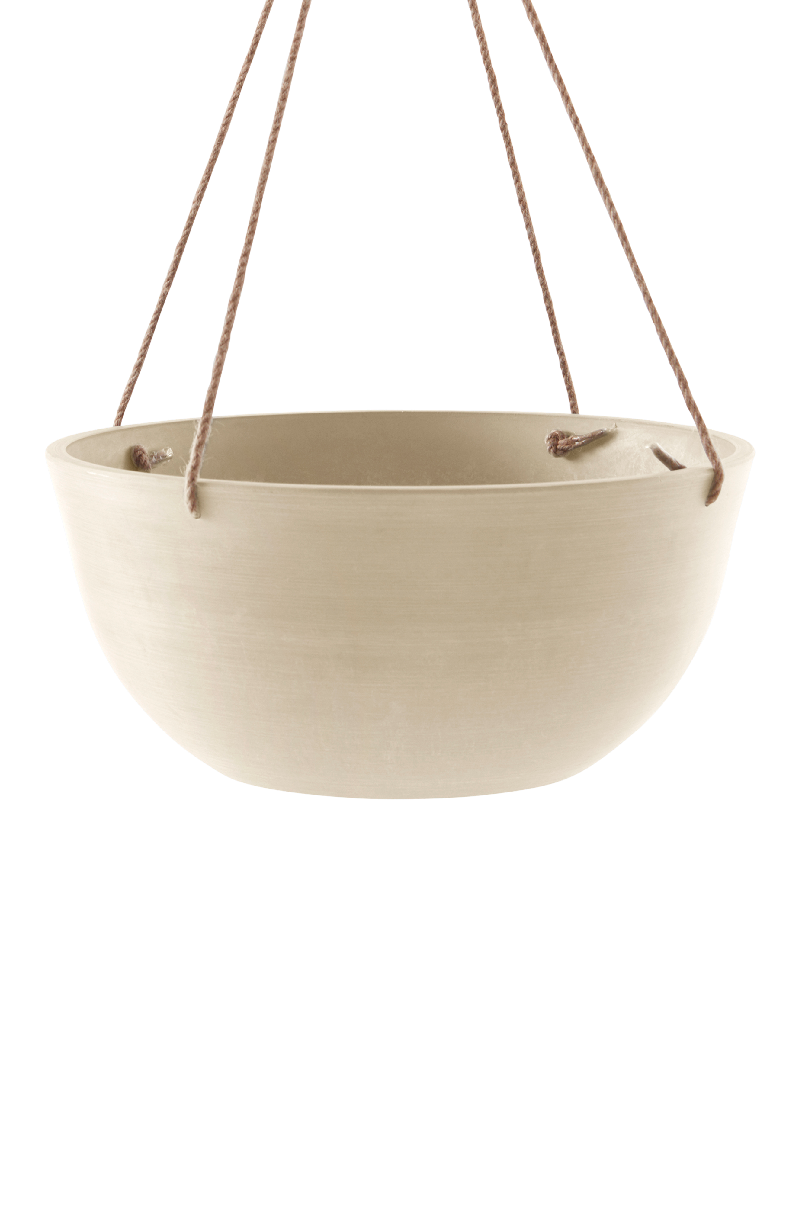 Amppeliruukku, pyöristetty malli. Erittäin kevyttä ja kestävää materiaalia, joka sopii sekä sisä- että ulkokäyttöön. Ripustusnaru. Amppeli kestää säävaihteluita ja pakkasta, ei haalistu auringossa ja on lisäksi kierrätettävä.