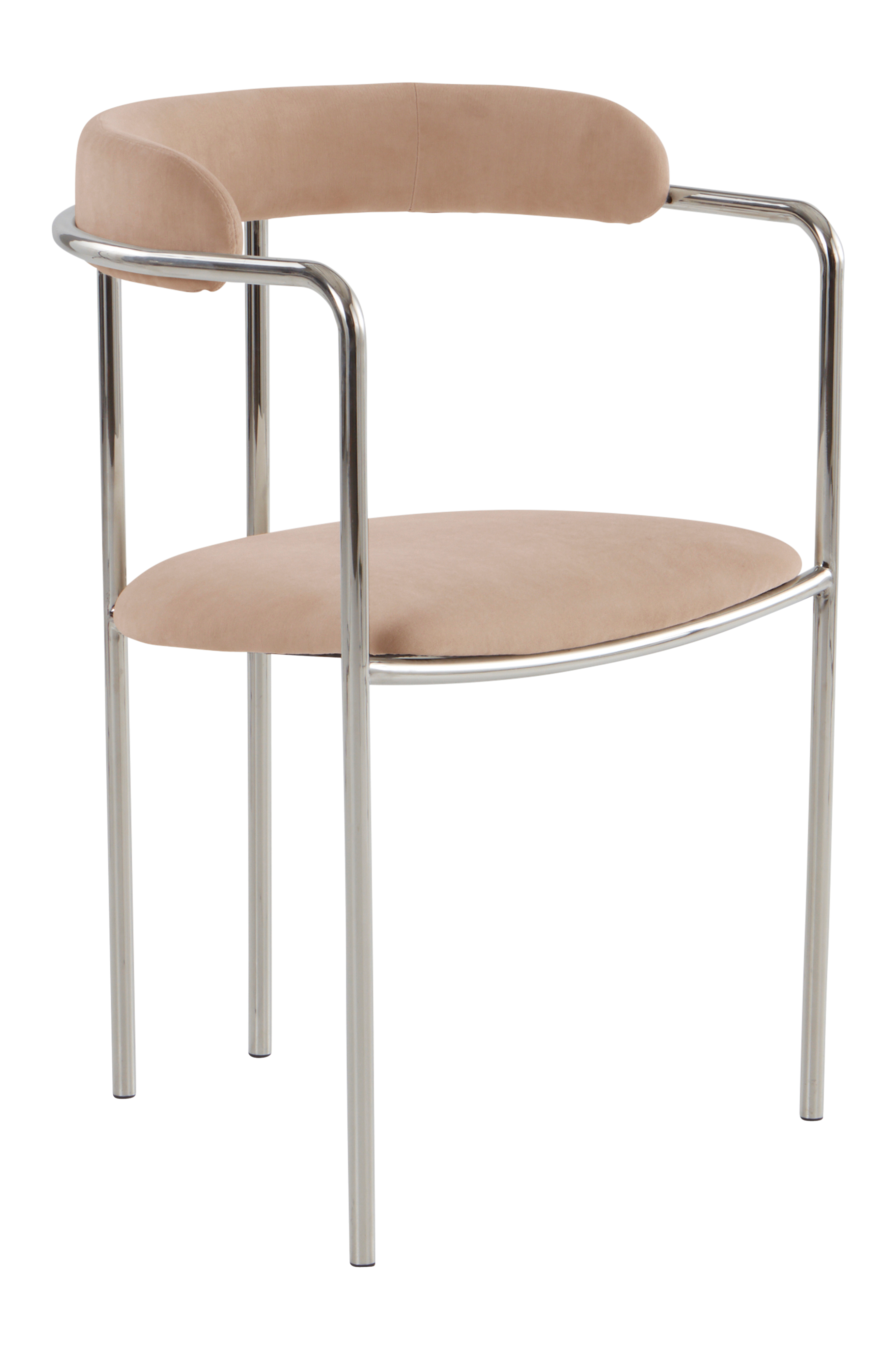 MARYLAND on tyylikäs ja ajaton käsinojallinen tuoli, jossa on yhdistetty elegantisti kromattua terästä ja pehmeää chenilleä. Istuimen ja siron selkänojan runko miellyttävästi pehmustettua MDF-levyä ja päällinen chenilleä. Koristeellinen MARYLAND-tuoli sopii hyvin avoimeen tilaan, eteiseen tai olohuoneeseen. Se näyttää hyvältä myös makuuhuoneessa. MARYLAND-tuoli sopii myös ruokapöydän ääreen, missä se luo hienostunutta ruokasalimaista tunnelmaa ja kutsuu viettämään pitkiä illallisia ystävien kanssa.
