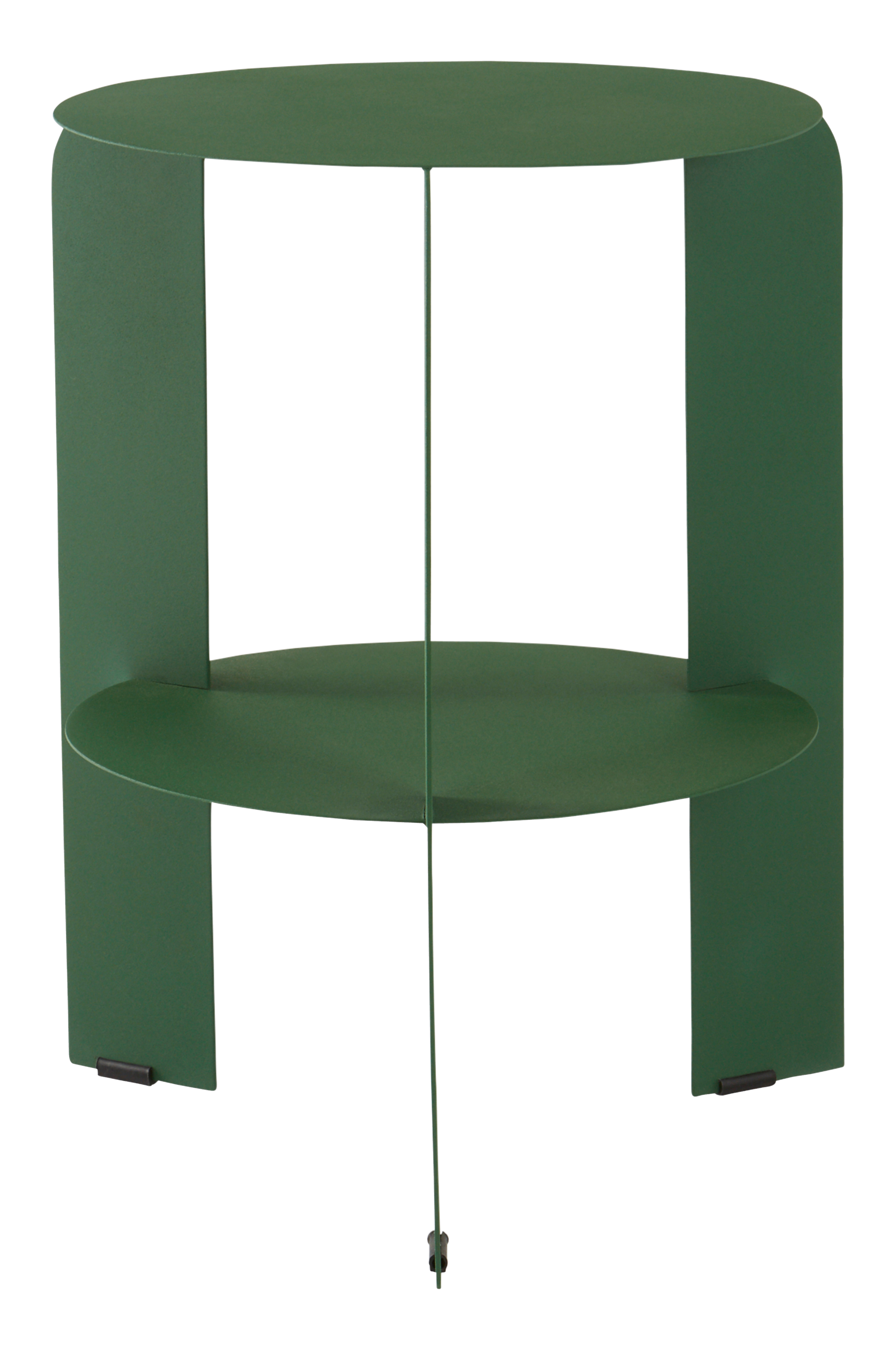 MAUREN on pyöreä rautainen sivupöytä, jossa on ohut pöytälevy ylhäällä ja yhtä ohut laskutaso sen alapuolella. Kolme suoraa jalkaa ovat ylhäältä pyöristettyjä ja pilkistävät hieman esiin pöytälevyn alta. Pöytä on maalattu hienojakoisella struktuurimaalilla. Jalkojen pienet kumitassut suojaavat lattioita.