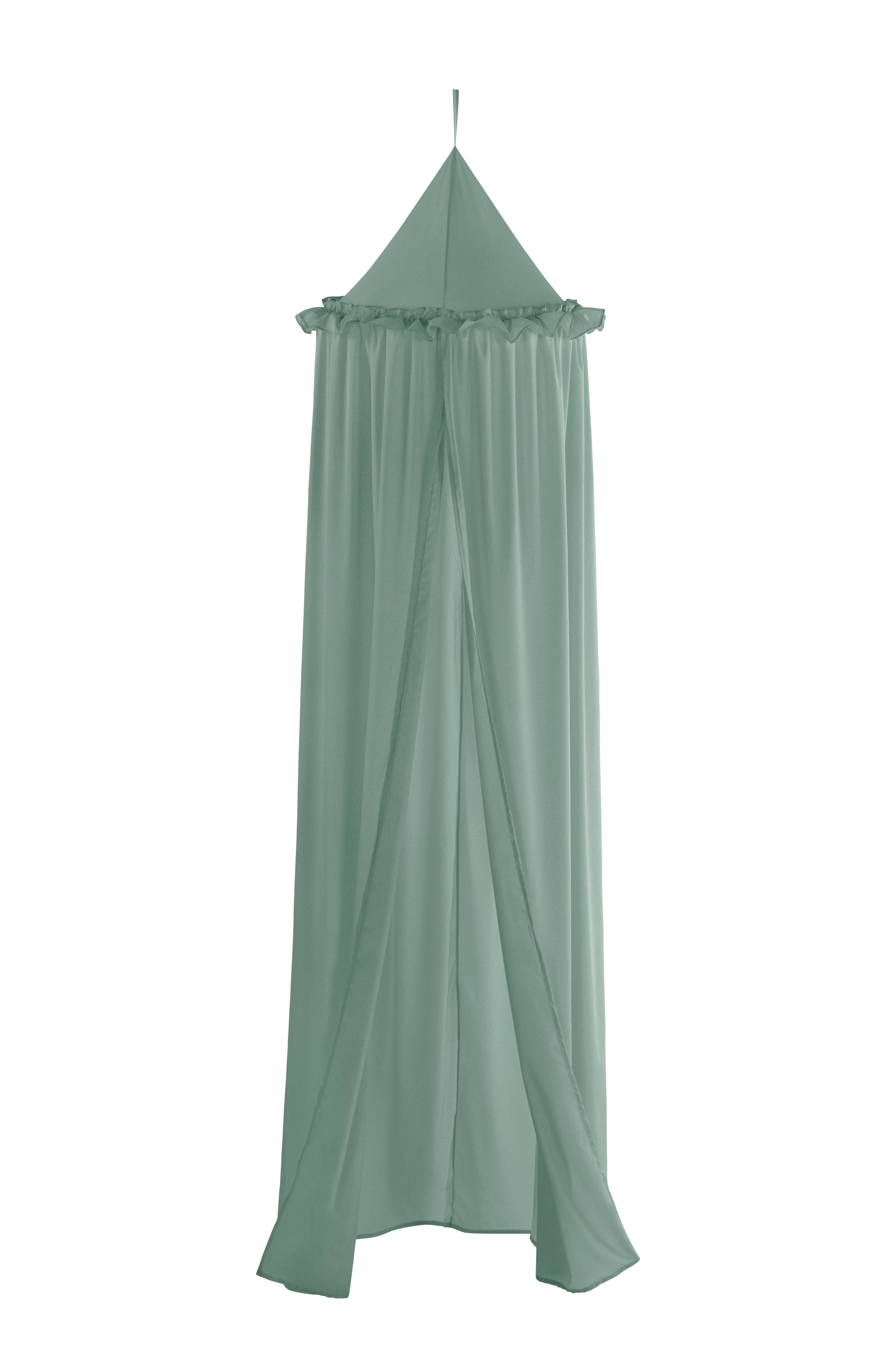 Sänkykatos yksiväristä polyesteriä. Kauniit värit ovat kevyesti kimaltavia. Kaksinkertainen röyhelö ylhäällä reunan ympärillä. Sänkykatos on avoin sekä edestä että takaa, minkä ansiosta voit asentaa valaisimen sängyn takana olevaan seinään. Yläosan kangaslenkistä ripustat helposti sänkykatoksen kattokoukkuun lastenhuoneeseen luomaan kodikasta ja viihtyisää tunnelmaa sängyn ympärille.