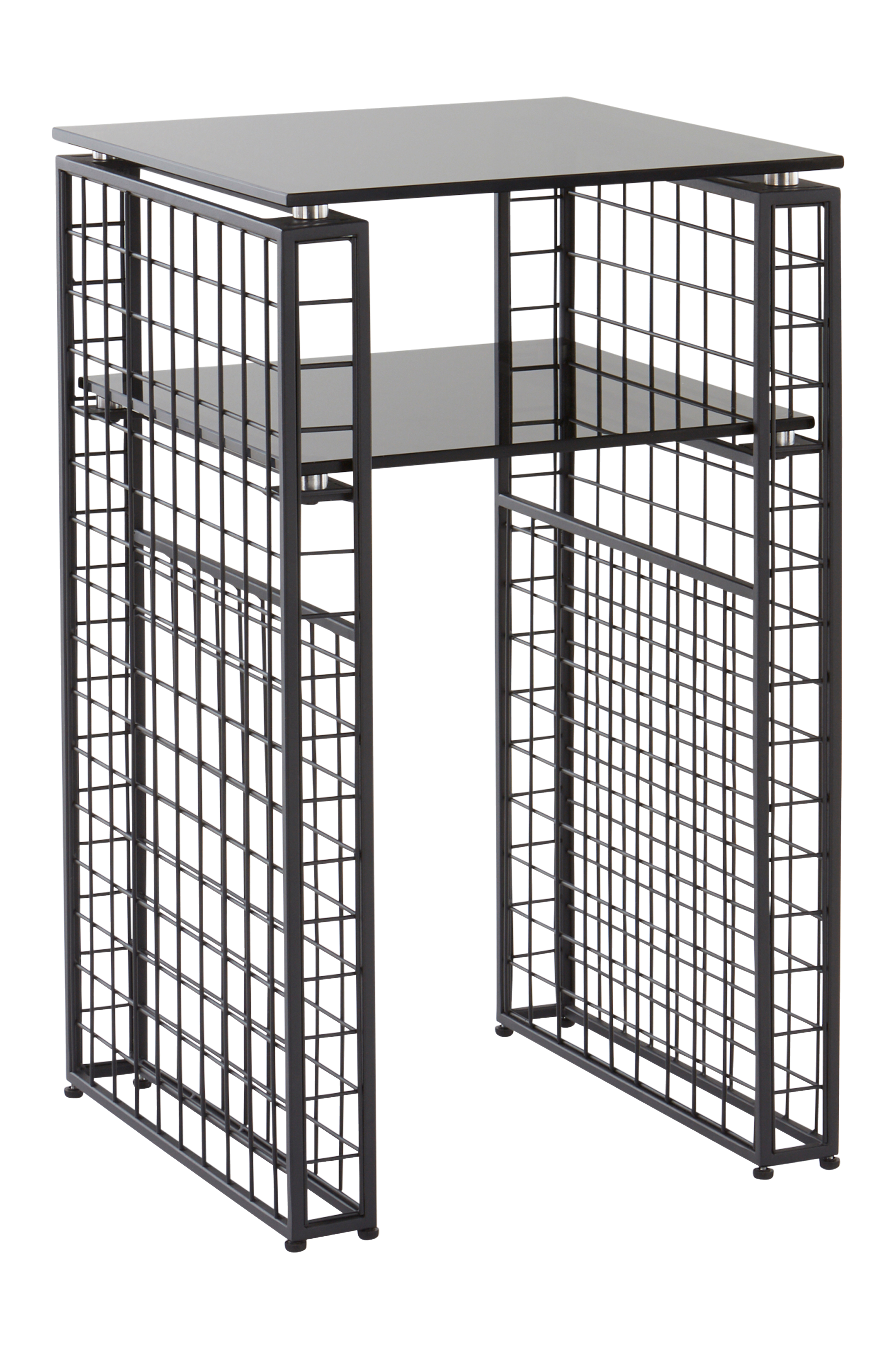 Yöpöytä, jossa on yhdistetty tyylikkäästi ja innovatiivisesti rautaritilöitä ja lasilevyjä. MEKKO-yöpöydässä on lasinen pöytälevy ja sen alla toinen kätevä lasilevy, jolla voi säilyttää kirjoja ja pieniä tavaroita. Sivujen runko on rautaa ja verkko rautavaijeria. Sivut ovat krominväriset tai mustaksi maalatut. Jalkojen korkeutta voidaan säätää, niin että pöytä seisoo tukevasti epätasaisella lattialla. Osittain koottava. Kokoamisohje mukana.
