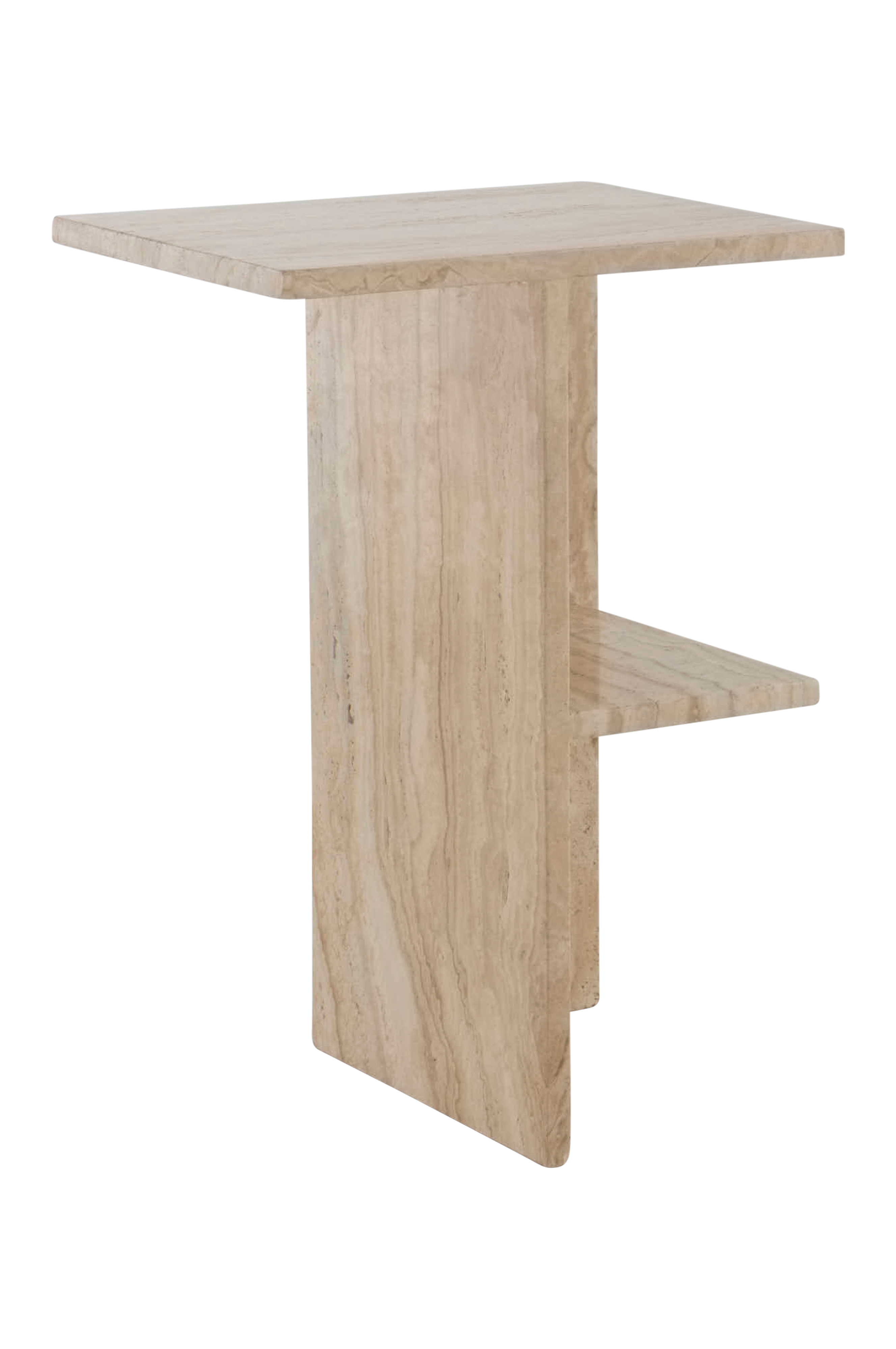 Travertiinista valmistetussa MELETO-yöpöydässä on hylly oikealla puolella, joten se sopii sängyn vasemmalle puolelle. Voidaan käyttää myös olohuoneen sivupöytänä. Kallistuksenesto sisältyy erikseen asiakkaan asennettavaksi.