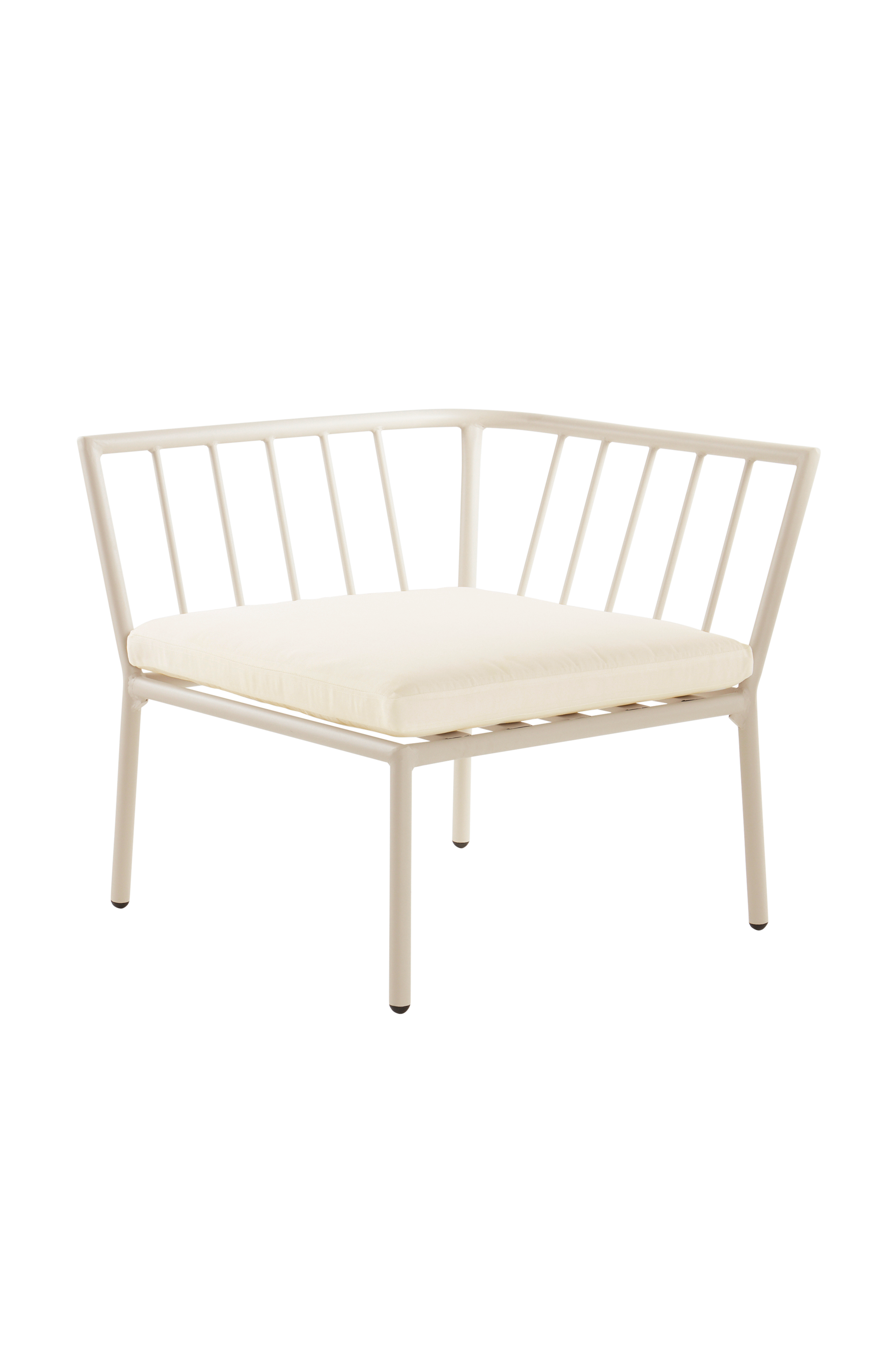 Sohvamoduuli - kulma, jauhemaalattua alumiinia, mattapintainen. Istuintyyny polyesteriverhoilulla ja vaahtomuovipehmusteella. Sopii erinomaisesti parvekkeelle tai puutarhaan kesän tullen. MENTON voi seistä ulkona ja se helpottaa ulkoilua. Sinun ei tarvitse kantaa heti, kun haluat istua ulkona. Sohvamoduulia voidaan käyttää kulmana, kun rakennat kulmasohvan yhdessä sohvamoduulin kanssa ilman runkotukea. Mutta se sopii myös yksittäiseksi nojatuoliksi. Sohvamoduuli on siisti ja siinä on mukava istuinsyvyys, ja matala istuinkorkeus antaa oikean lounge-tunnelman. Istuintyyny kuuluu toimitukseen, ja nurkasta tulee erityisen mukava, jos täydennät sitä ihanilla tyynyillä selkänojan varrella. Tasaiset värit ja kuviot tarjoavat mahdollisuuden hauskaan vaihteluun. Kiinnikkeet sisältyvät toimitukseen. Alhainen paino. MENTON on helppo pinota säilytystä varten.