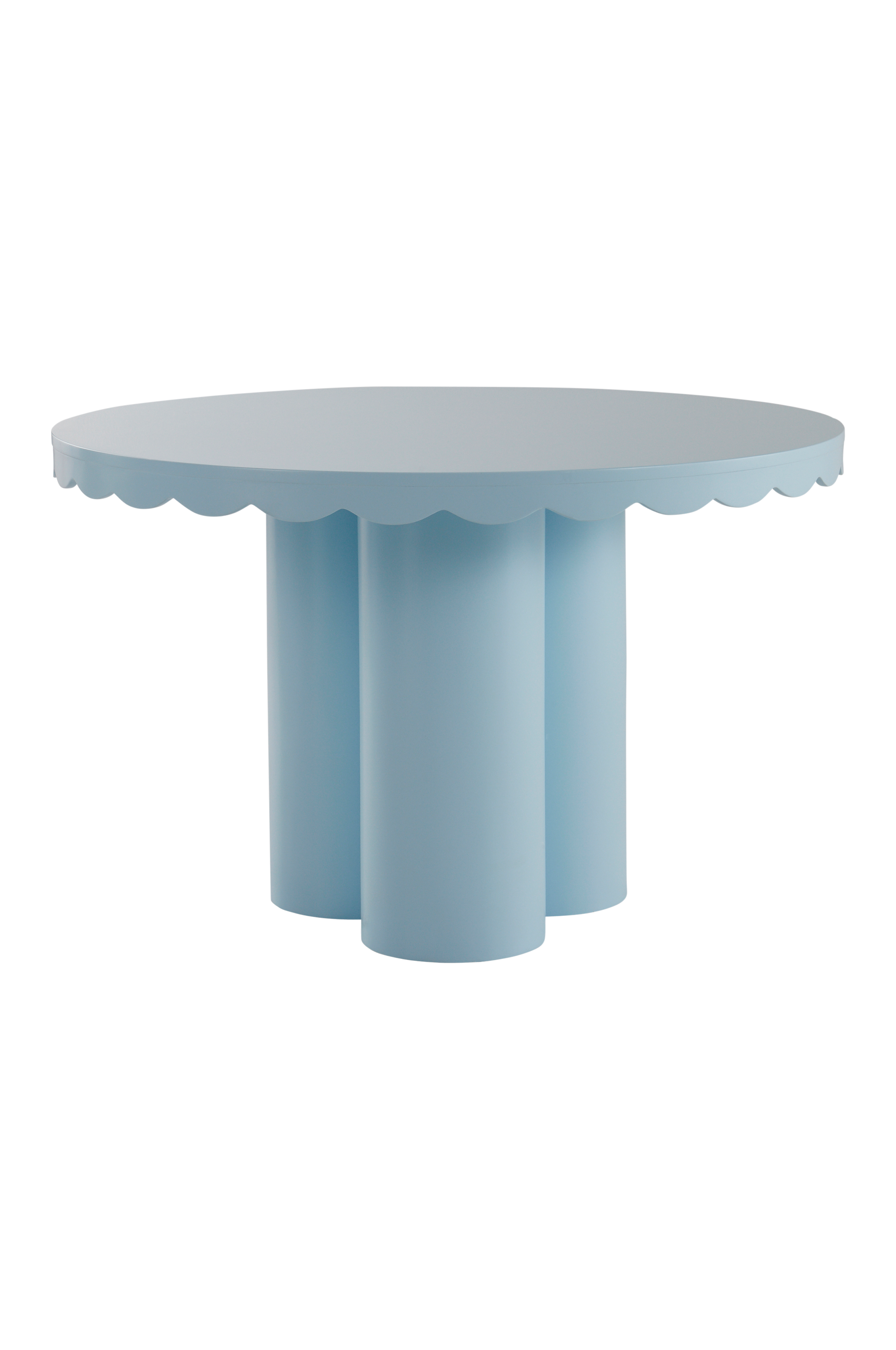 Pyöreä ruokapöytä, joka on sekä leikkisä että hieman satumainen. Valmistettu FSC-merkitystä MDF-levystä. Kolme pylväsjalkaa ja pöytälevyssä aaltomainen reuna. Pyöreä pöytä luo pöydän ympärillä istuvaan seurueeseen yhteenkuuluvuuden tunteen. Iloiset värit ja ihana kevättunnelma antaa toivoa vuoden ympäri. Pöydän maali on vesipohjainen. Osittain koottava. Kokoamisohje mukana.