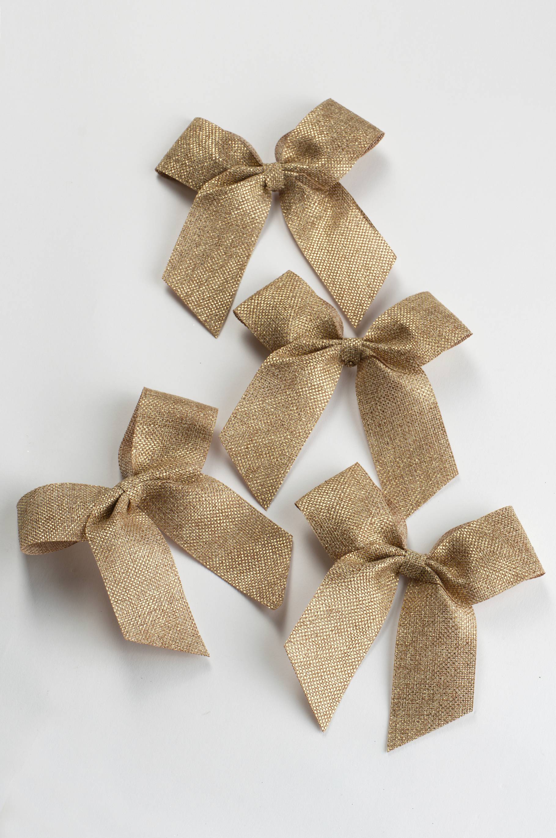 METALINO-pieni rusetti lisää juhlallista viehätystä glitteröivällä juutti-ilmeellä. Jokaisessa polyesteristä valmistetussa rusetissa on rautalanka, joka sopii ihanteellisesti joulukuuseen ripustettavaksi.