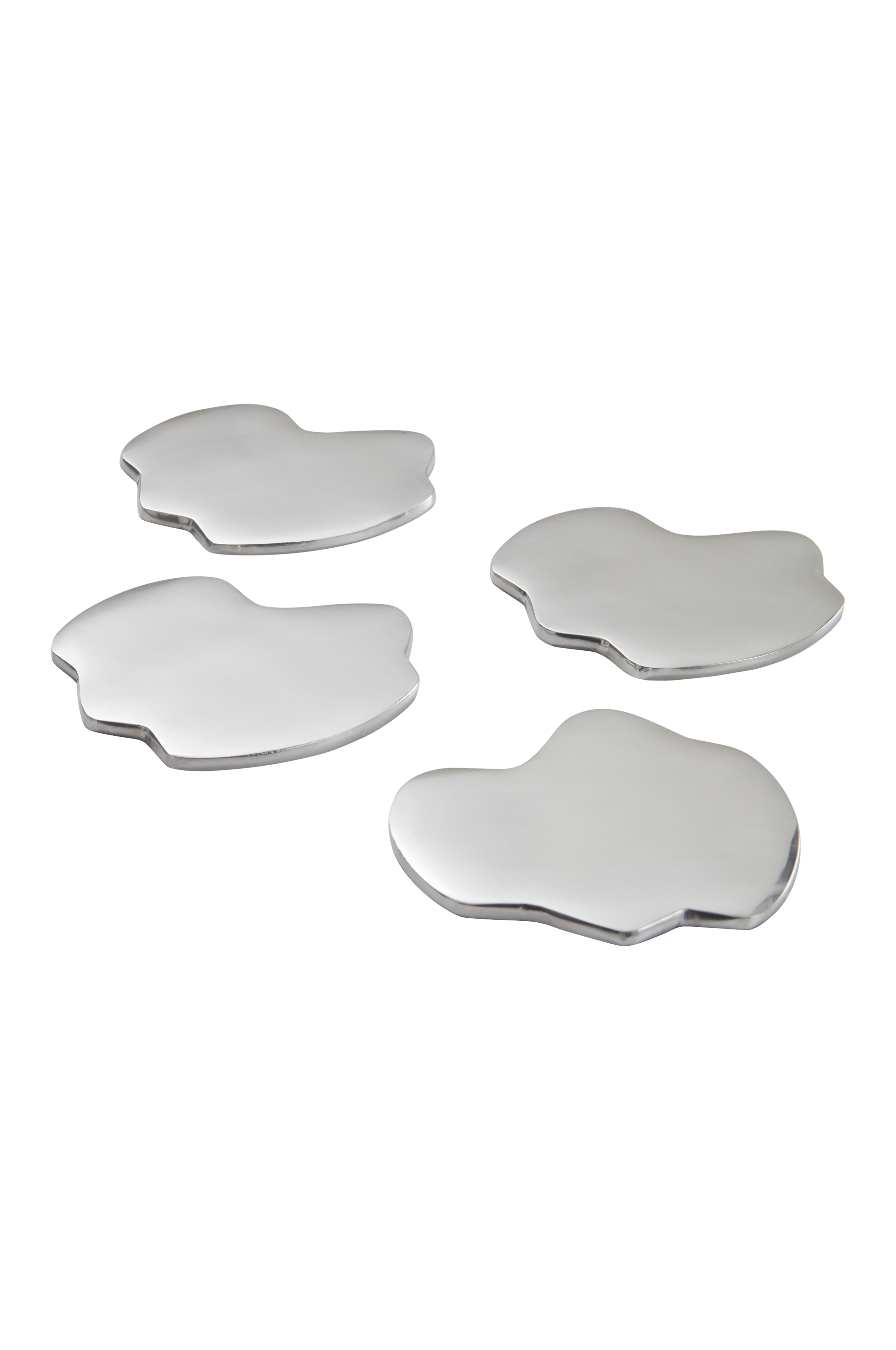 Alumiiniset lasinaluset, 4/pakkaus. Epäsäännöllisen muotoiset lasinaluset luovat kiinnostavan kattauksen sekä suojaavat pöytää nesteen ja lämmön aiheuttamilta tahroilta.