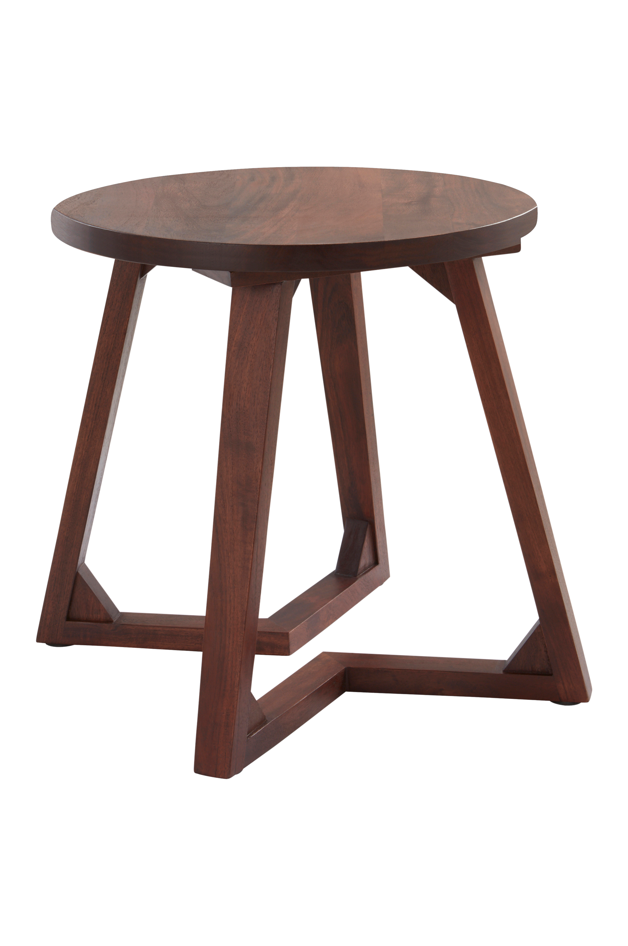 Rustiikki sivupöytä massiivista mangopuuta, jonka tumma pintakäsittely antaa puulle poltetun ilmeen ja jättää puunsyyt näkyviin. Pyöreässä pöydässä on neljä jännittävän muotoista jalkaa, mikä tekee pöydästä erityislaatuisen ja tukevan. Pöytä sopii hyvin sekä sohvan että sängyn viereen. Osittain koottava. Kokoamisohje mukana.