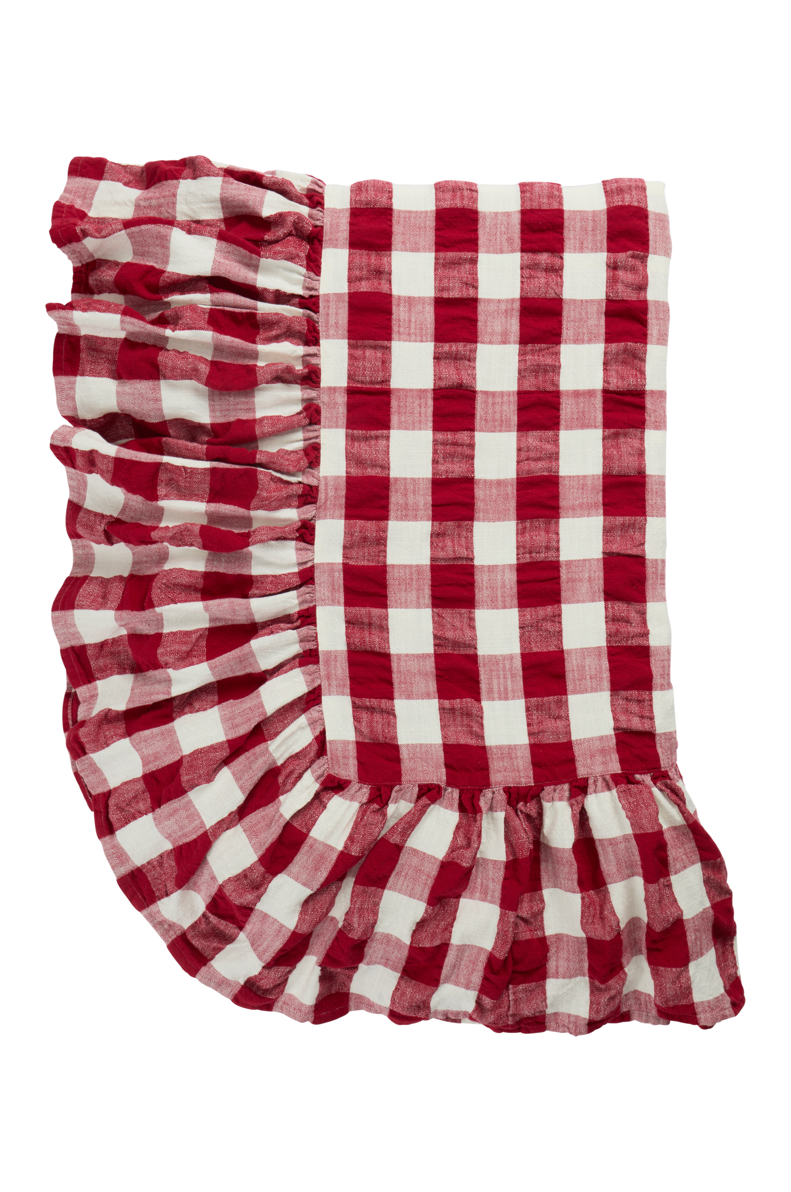 MIMMI-pöytäliinassa on lankavärjätty ruutukuvio seersucker-kankaasta. Tässä puuvillaisessa pöytäliinassa on ympäriinsä röyhelöinen reuna. Klassinen ruutukuvio lisää viehätystä keittiöön ja tekee siitä täydellisen mihin tahansa tilaisuuteen.