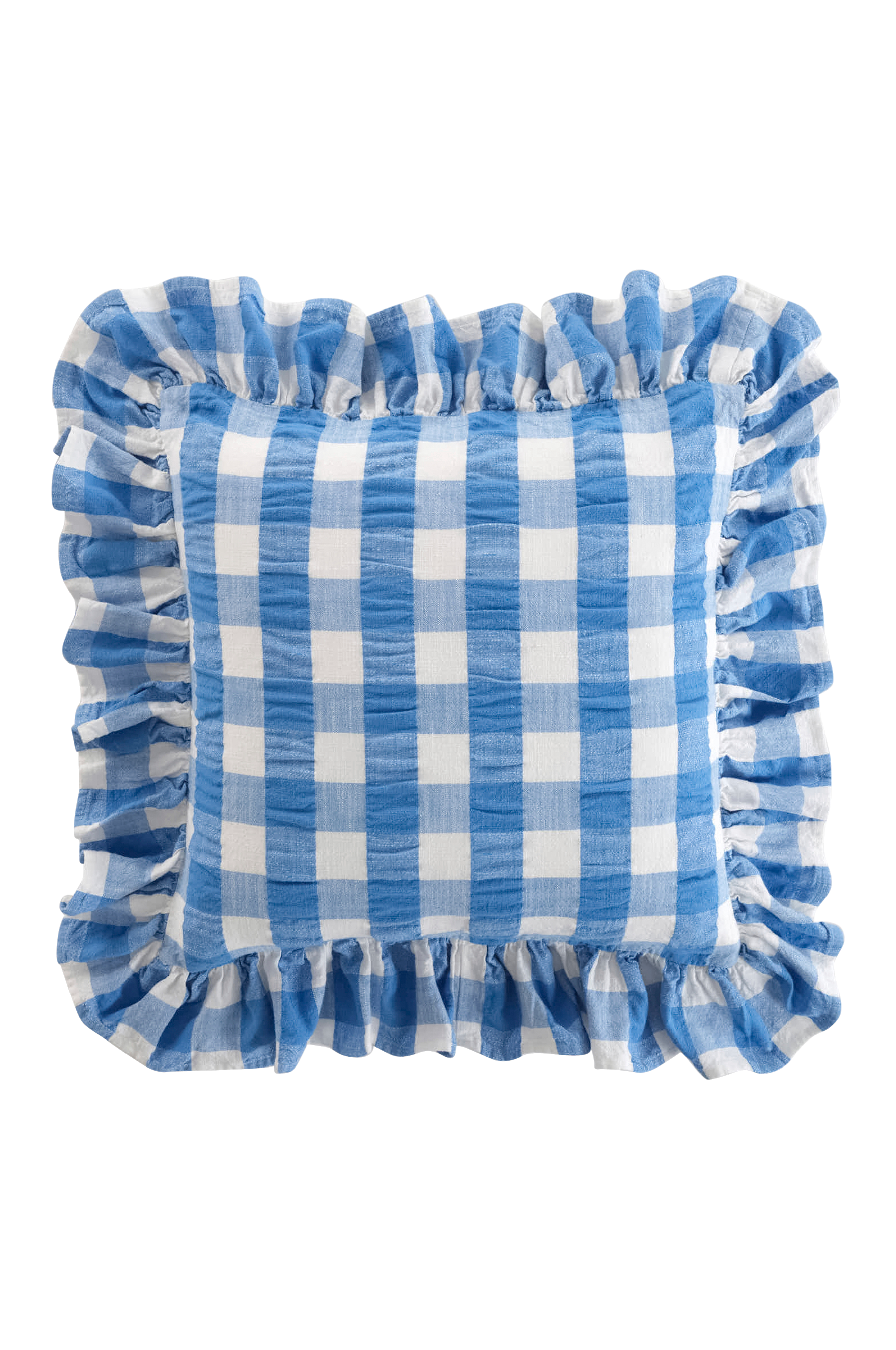 MIMMI-tyynynpäällisessä on lankavärjätty ruutukuvio ja röyhelöiset reunat, ja se on valmistettu puuvillaisesta seersucker-kankaasta. Siinä on klassinen ruutukuvio ja piilotettu yhteensopiva vetoketju takana.