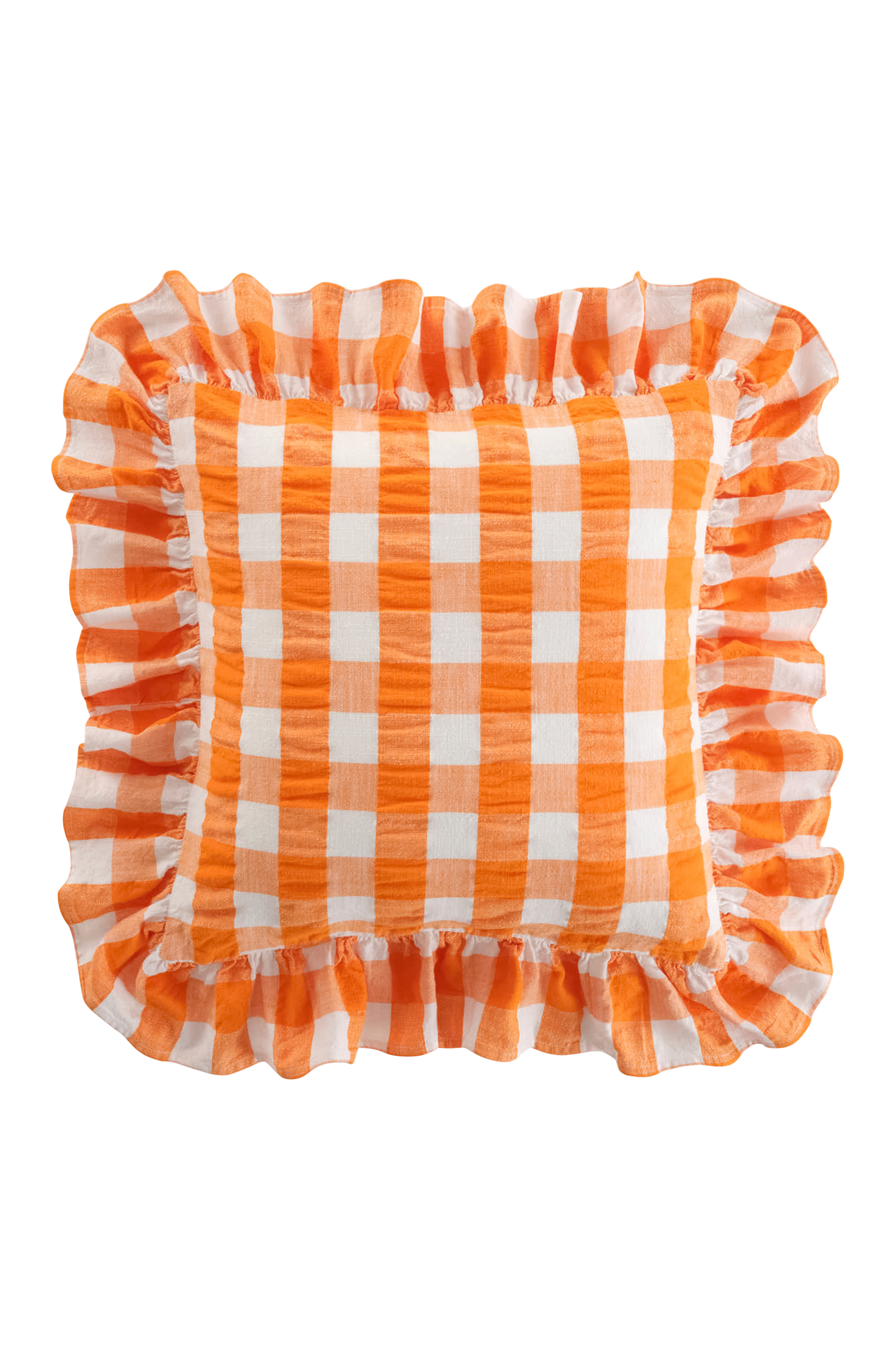 MIMMI-tyynynpäällisessä on lankavärjätty ruutukuvio ja röyhelöiset reunat, ja se on valmistettu puuvillaisesta seersucker-kankaasta. Siinä on klassinen ruutukuvio ja piilotettu yhteensopiva vetoketju takana.