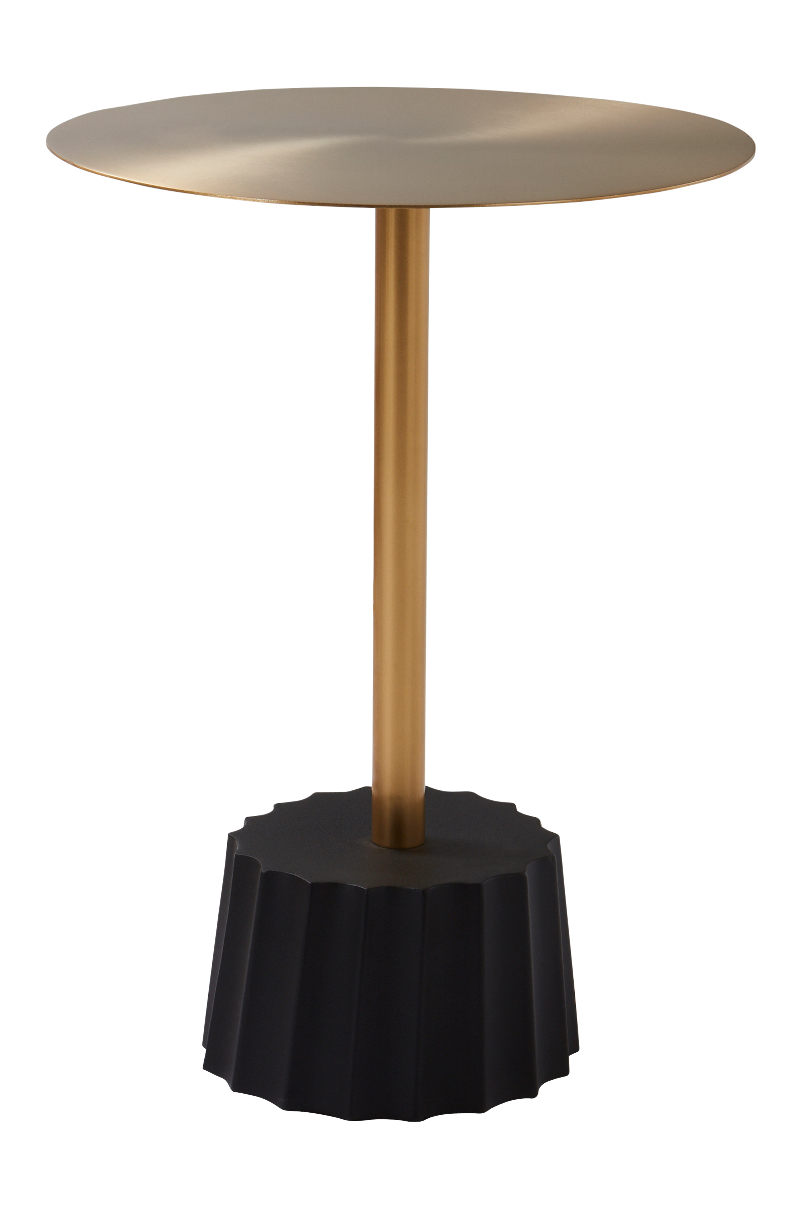 MINOVA on erikoinen sivupöytä, jossa on ohut messinginvärinen pöytälevy. Painava hammaspyörän muotoinen jalusta luo näyttävän kontrastin. Myös jalka on messinginvärinen. Jauhemaalattu pinta ja mustat mattapintaiset yksityiskohdat. Painava jalusta tekee pöydästä vakaan.