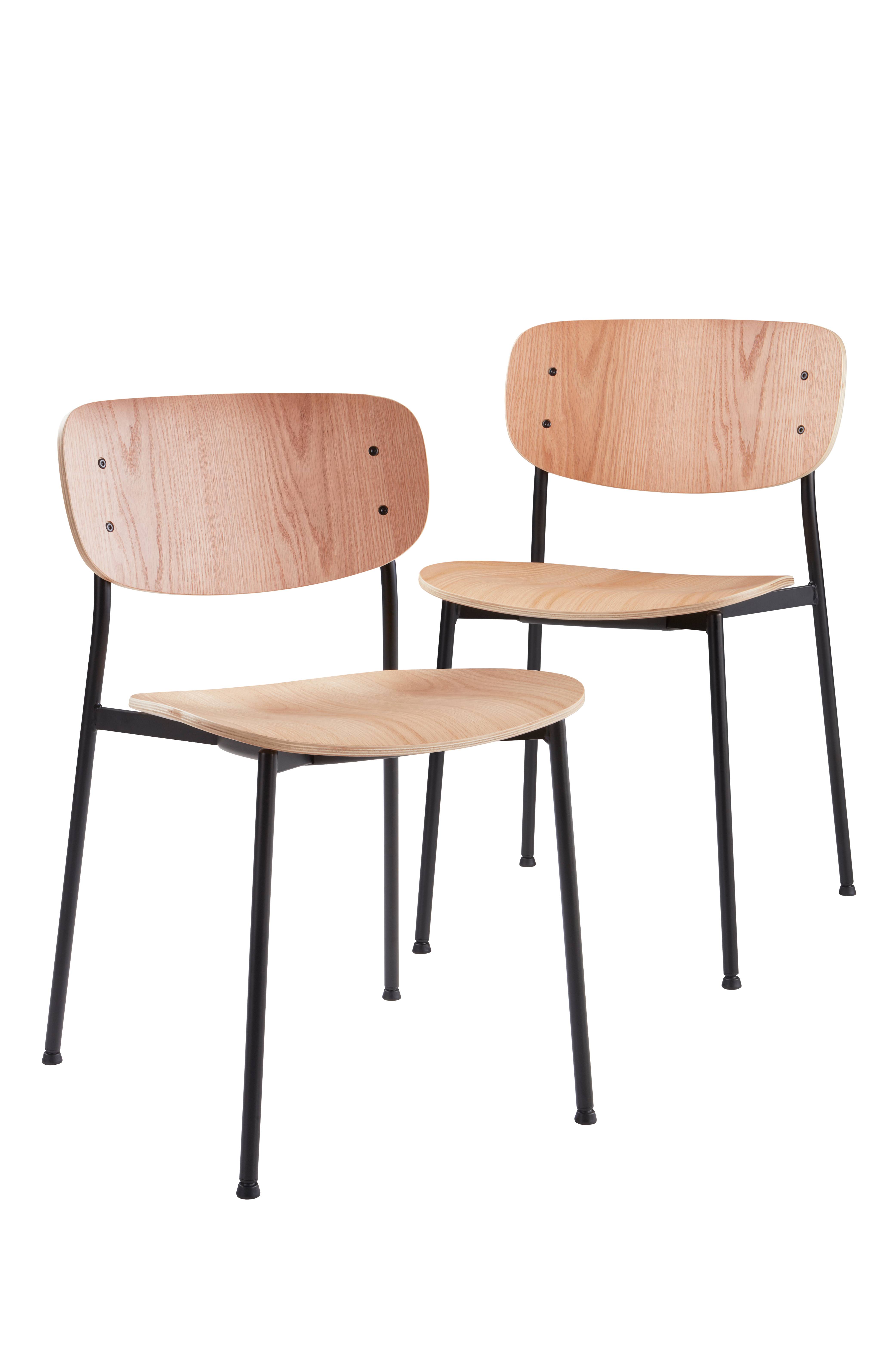Tyylikkäät, klassisen malliset tuolit, 2/pakkaus. Istuin ja selkänoja FSC-merkittyä vaneria ja FSC-merkittyä tammiviilua. Runko maalattua terästä. Kätevä tuoli on pinottava. Osittain koottava. Kokoamisohje mukana.