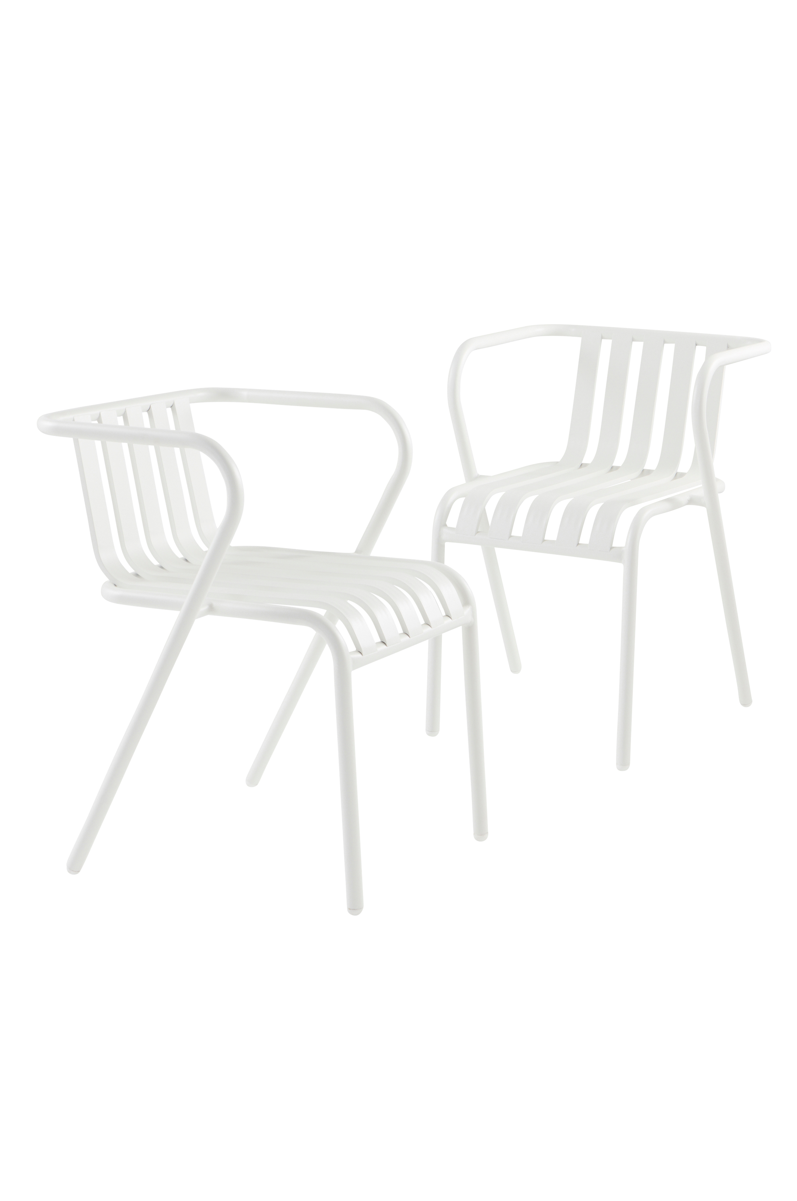 Käsinojalliset tuolit jauhemaalattua mattapintaista alumiinia, 2/pakkaus. NERJA-sarjassa on pehmeät linjat ja näyttävä ulkonäkö. Alumiinirunko on tukeva, mutta kevyt, ja se tekee NERJA-tuotteesta kevyen. NERJA sopii ulkokäyttöön, sillä alumiini ei ruostu ja on helppo pyyhkiä puhtaaksi. Tuoli on pinottava.