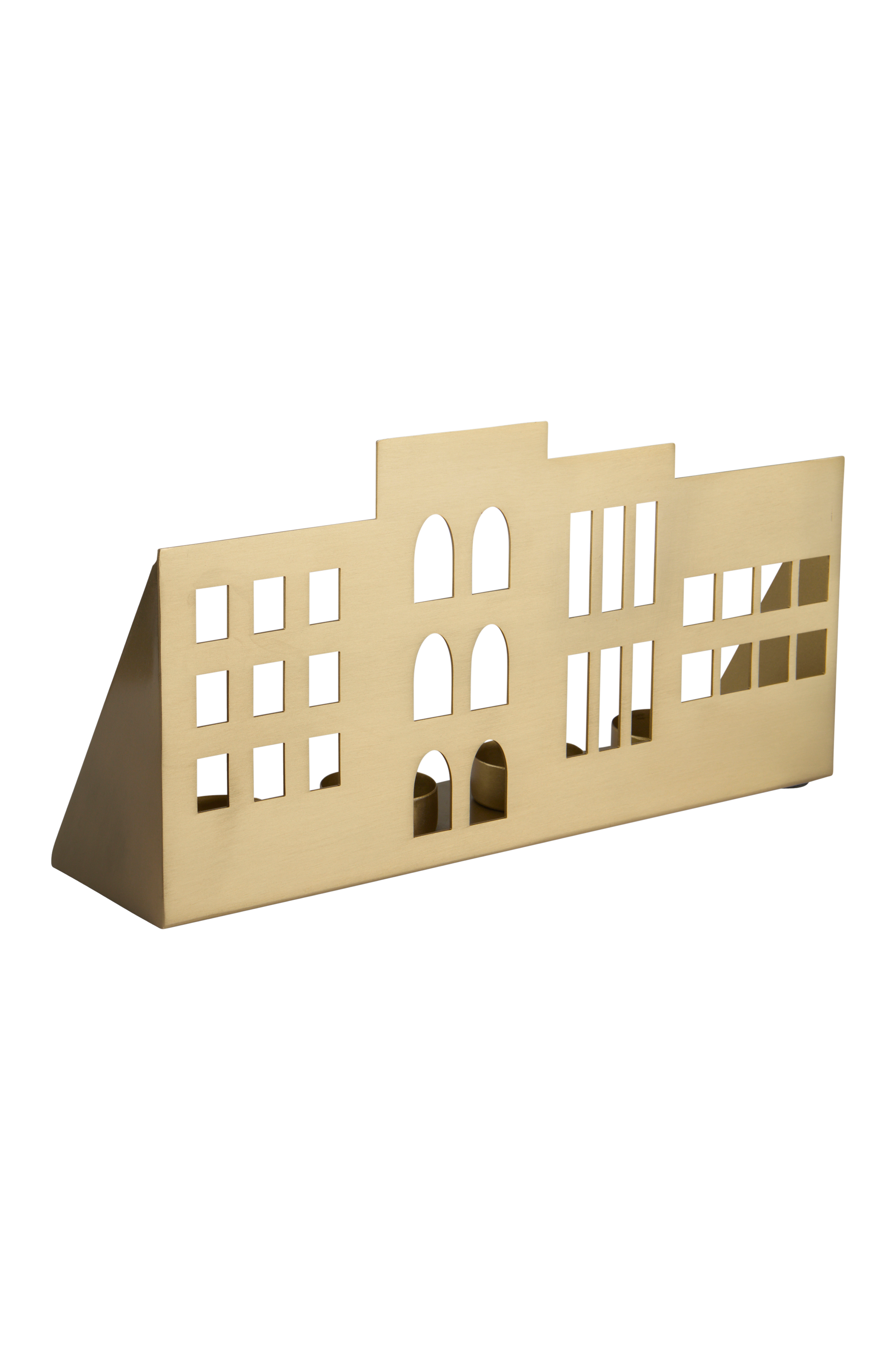 Rautainen kynttilälyhty, joka on muotoiltu talon siluetiksi. Tässä tyylikkäässä kappaleessa on neljä kynttilänpidikettä, jotka luovat lämpimän ja kutsuvan tunnelman. Ihanteellinen kodikkaaseen kodin sisustukseen.
