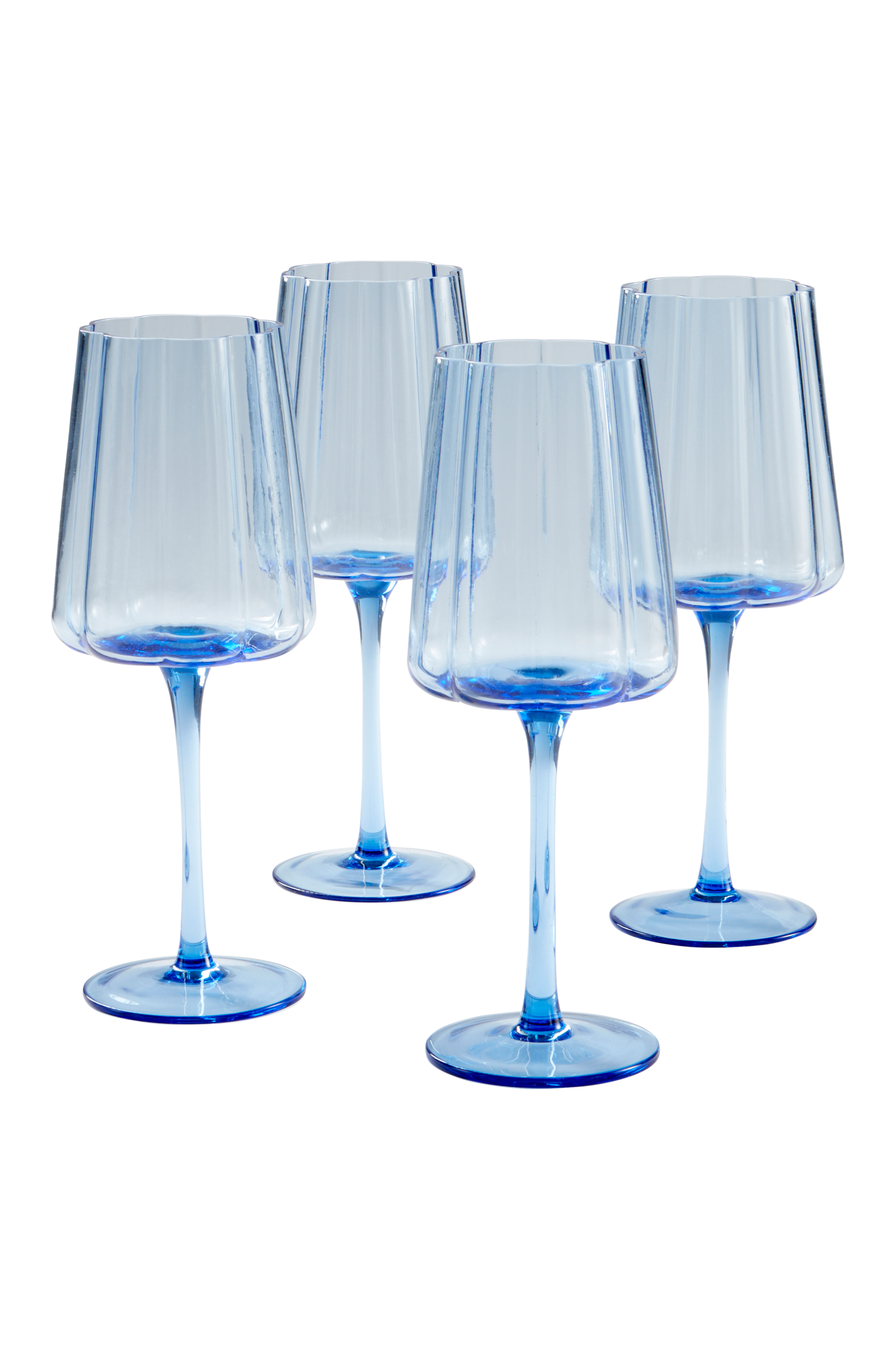 Jalalliset viinilasit, 4/pakkaus. NINA-sarjan lasit ovat kesäkukan muotoiset ja väriltään taivaansiniset. NINA-sarjan viinilasit sopivat hienosti valko-, puna- ja roseeviinille. Lasit sopivat sekä juhlavaan että mukavaan ja rentoon tyyliin. Harkitse NINA-laseja, kun suunnittelet kesäisiä puutarhajuhlia.