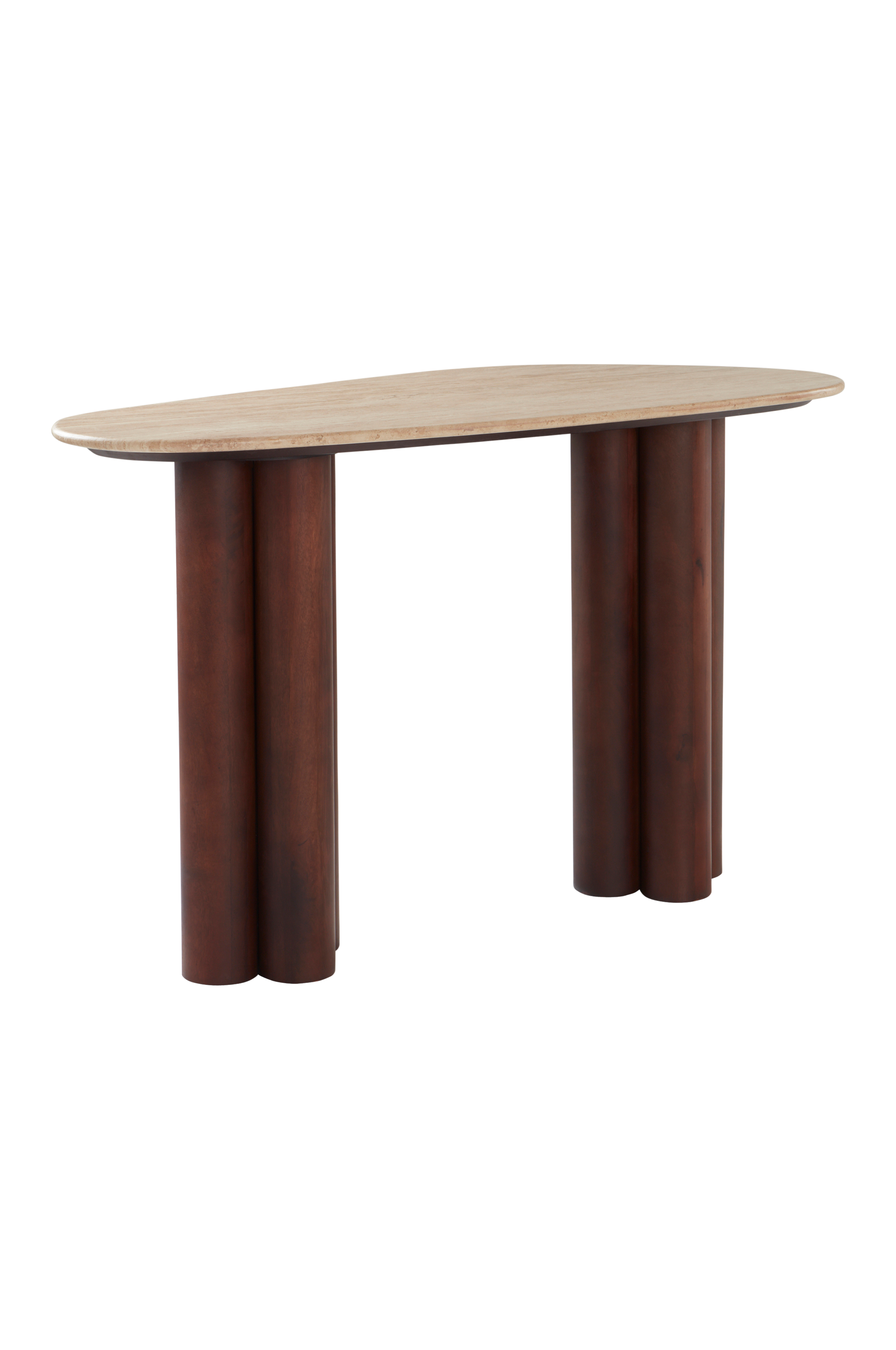 OBIE-kirjoituspöydässä on tyylikkäät kontrastit. Pöytälevy on travertiinia, luonnonkiveä, jossa voi olla pieniä onteloita ja joka on väriltään kauniin juovikasta. Tyylikkäästi muotoillut näyttävät jalat mangopuuta. Pöytälevyssä on epäsäännöllinen, pehmeä muoto ja pyöristetyt reunat. Kirjoituspöytä sopii myös sivupöydäksi. Pöydän muotoilu ja materiaalivalinta ovat ainutlaatuiset. Osittain koottava. Kokoamisohje mukana.