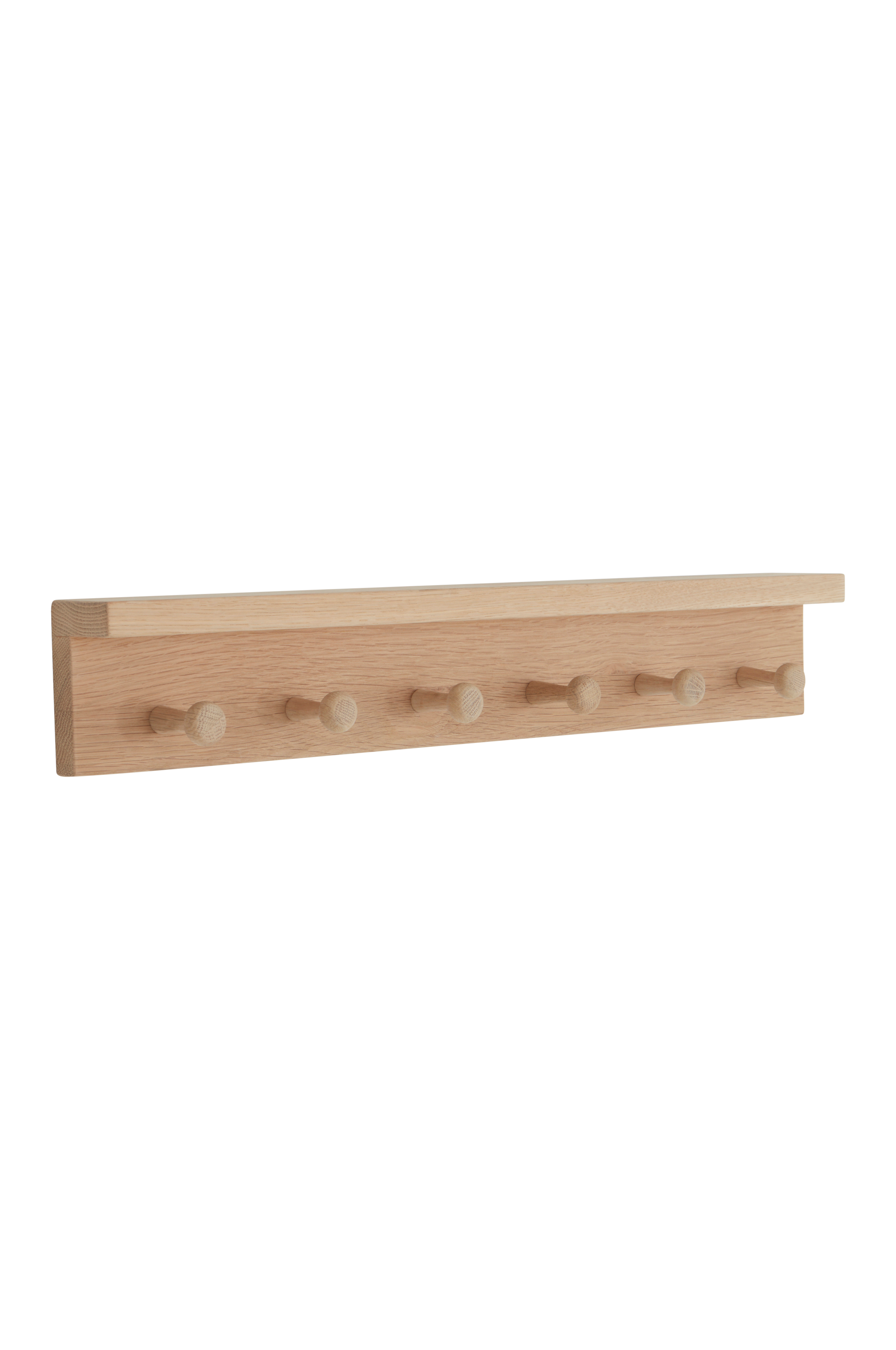 Naulakko FSC-sertifioitua massiivitammea. OSLO on aito ja rustiikki sarja hienoa lipeäkäsiteltyä tammea, joka luo pehmeän harmaanbeigen sävyn. OSLO-naulakossa on kuusi käytännöllisiä koukkua ja lisäksi pieni hylly koukkujen yläpuolella esim. avaimille ja muille pikkutavaroille, jotka haluat pitää käden ulottuvilla eteisessä. Jokaisessa koukussa on pyöreä nuppi, jotta vaatteet eivät putoa.
