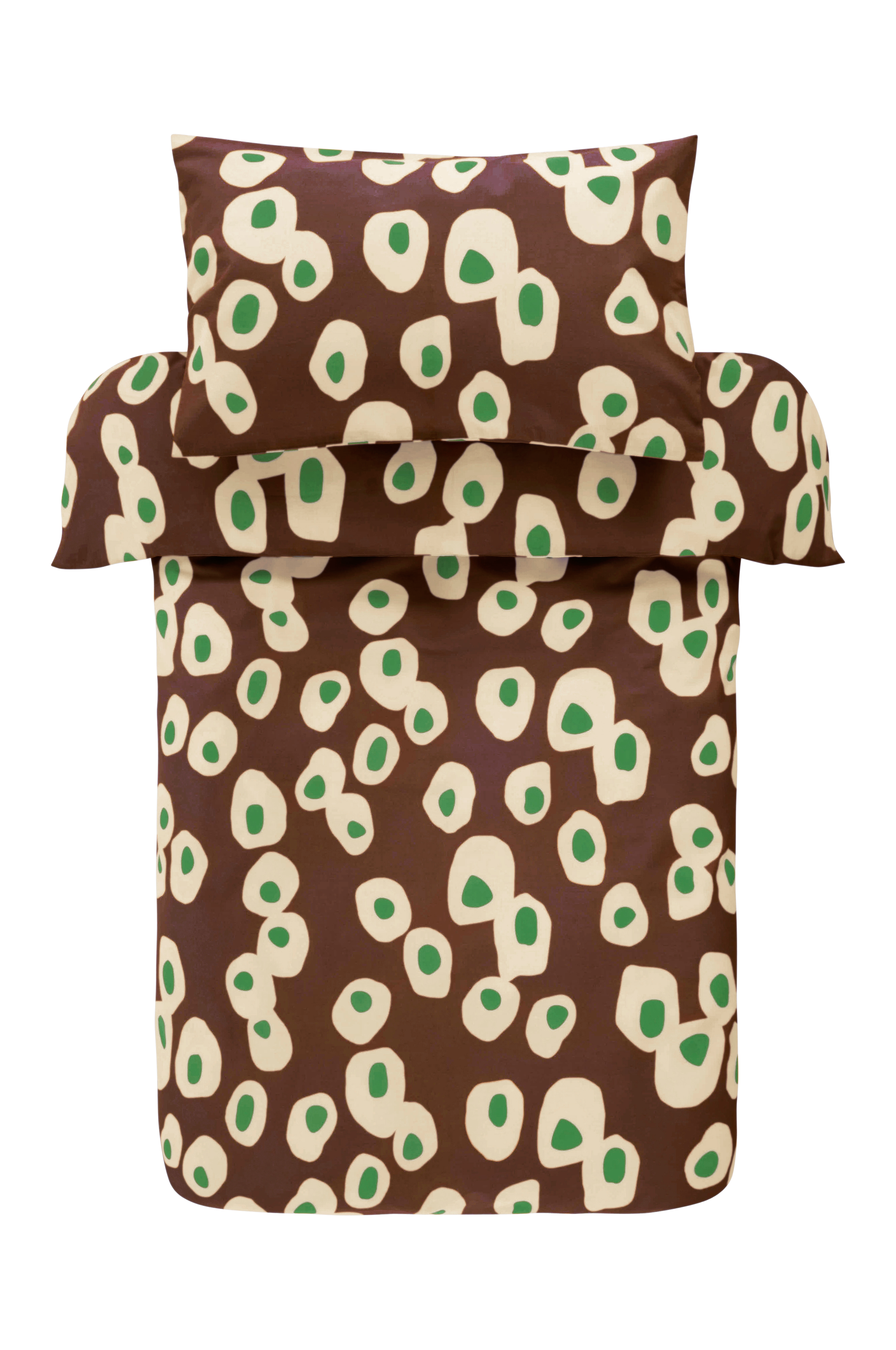 OVO MINI -sängynpeitto tuo leikkisän kosketuksen lastenhuoneeseesi Maria Carlbergin innoittamalla paistetun munan kuviolla. Se on valmistettu ympäristöystävällisestä puuvillasta, ja se sisältää peiton ja tyynynpäällisen pinnasänkyyn. Eloisa muotoilu tuo retrohenkistä tunnelmaa lapsesi tilaan.