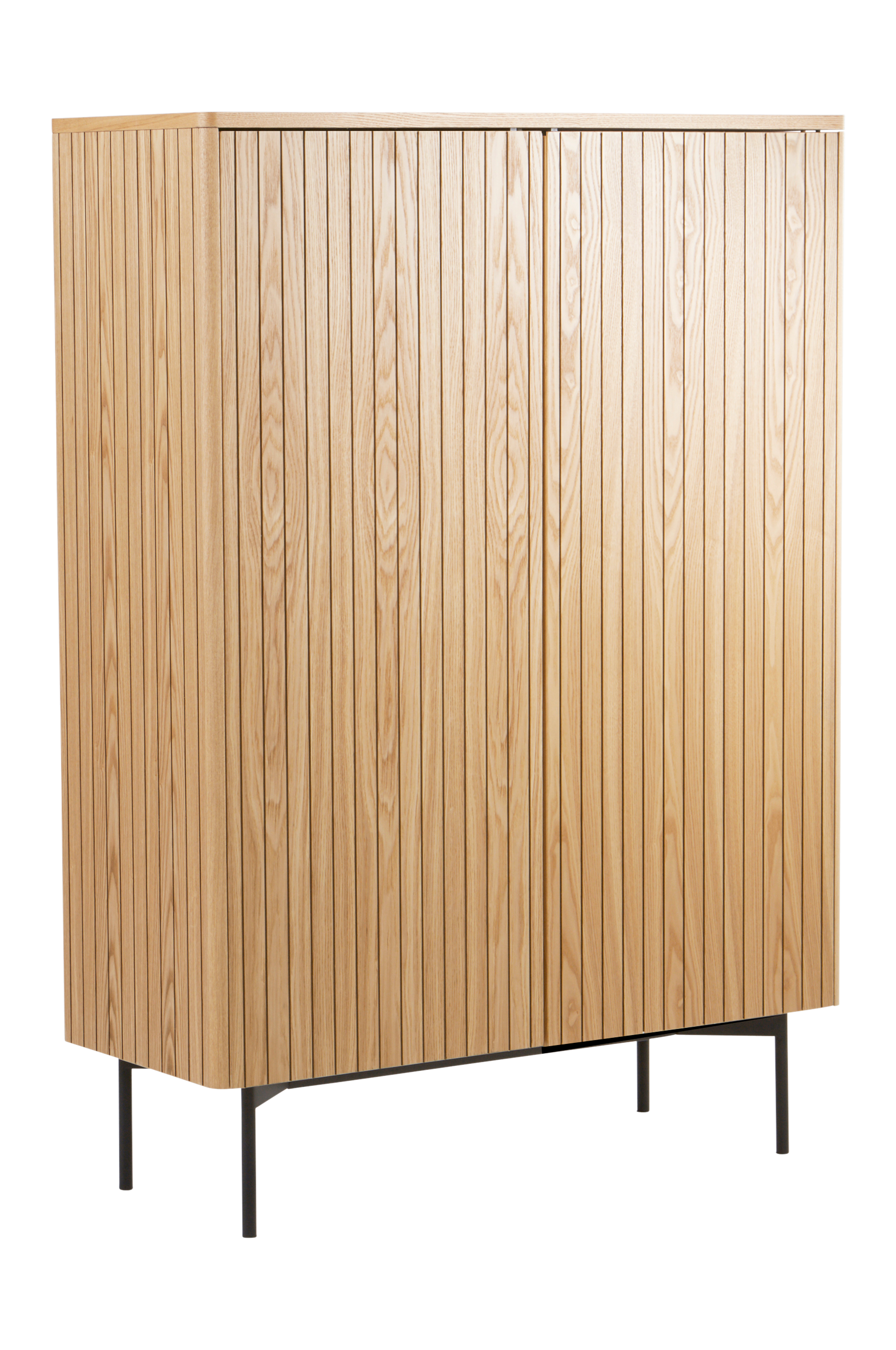 Kaappi MDF-levyä ja tuhkaviilua. Kaapissa on jyrsittyjä pystyraitoja, jotka antavat klassisen tunnelman, jossa on retron vivahde. Kaapissa on tyylikkäät pehmeästi pyöristetyt kulmat, ja ovet avautuvat push-toiminnolla, mikä tarkoittaa, että ovi avataan ja suljetaan painamalla sitä kevyesti sisäänpäin. Kaapissa on kolme kiinteää hyllyä. Suorat teräsjalat on pulverimaalattu. PALANZO on tyylikäs kaappi, joka tuo huoneeseesi asennetta ja tarjoaa samalla ovien taakse piilotettua käytännöllistä säilytystilaa. Mukana seinäkiinnike. Ruuvit mukana. Vaatii jonkin verran kokoonpanoa. Kokoonpano-ohjeet sisältyvät toimitukseen. PALANZO on huonekalusarja, jossa on useita kivoja paloja, jotka sopivat yhteen.