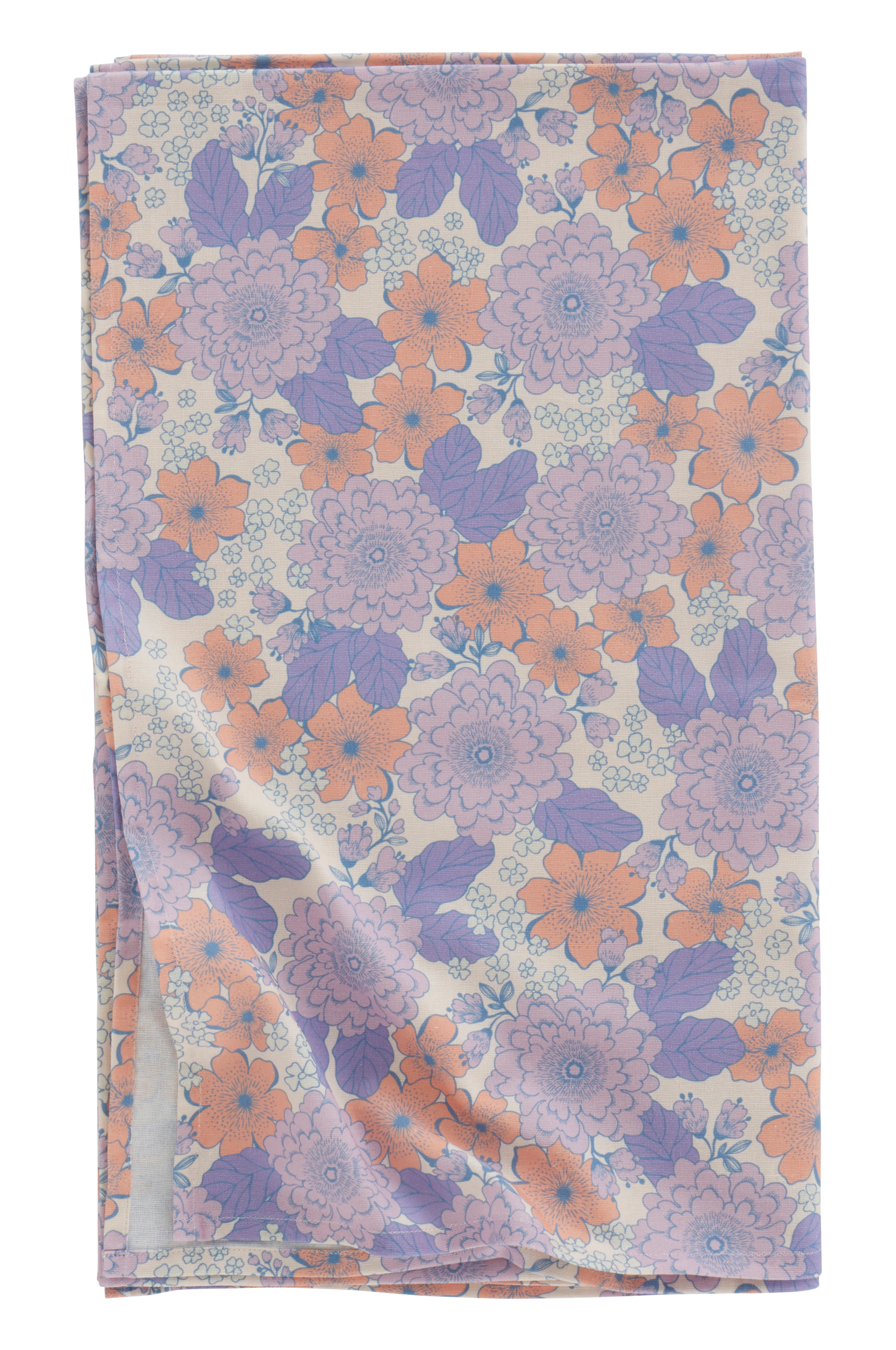 Pöytäliina, jossa Maria Carlbergin suunnittelema ihastuttava kukkakuvio. Painetun kukkakuvion utuiset pastellisävyt vahvistavat miellyttävää retrohenkistä vaikutelmaa. Miellyttävä puuvillakangas on vaatepesty erittäin pehmeäksi. Kankaan paino 170 g/m².