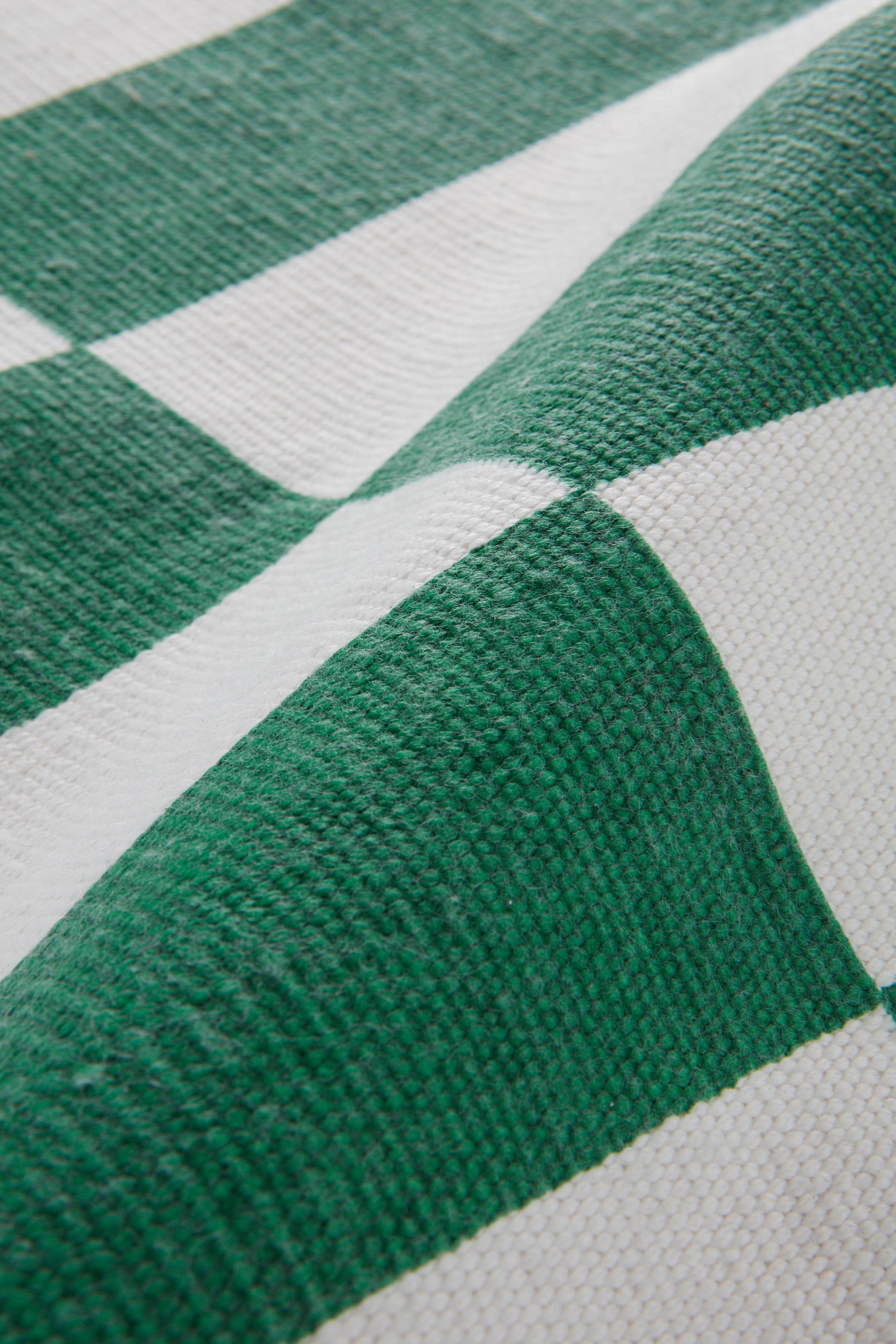 Sileäkudottu matto, joka on käsin kudottu ja jossa on painettu reunakuvio. Painatus tuottaa selvät, kirkkaat värit. Tämä matto on ohut, ja sitä voidaan käyttää rantamattona tai piknik-mattona. Se toimii tietysti myös sisätiloissa, ja sitä on helppo siirtää ja ravistella, kätevä esimerkiksi eteisessä. Matto on valmistettu kierrätysmateriaaleista valmistetusta polyesteristä, ja se sopii erinomaisesti ulkokäyttöön. Se kestää kastumista homehtumatta, mikä on materiaalin loistava etu. Paksuus 0,6-0,7 cm. 650-700 g/m².