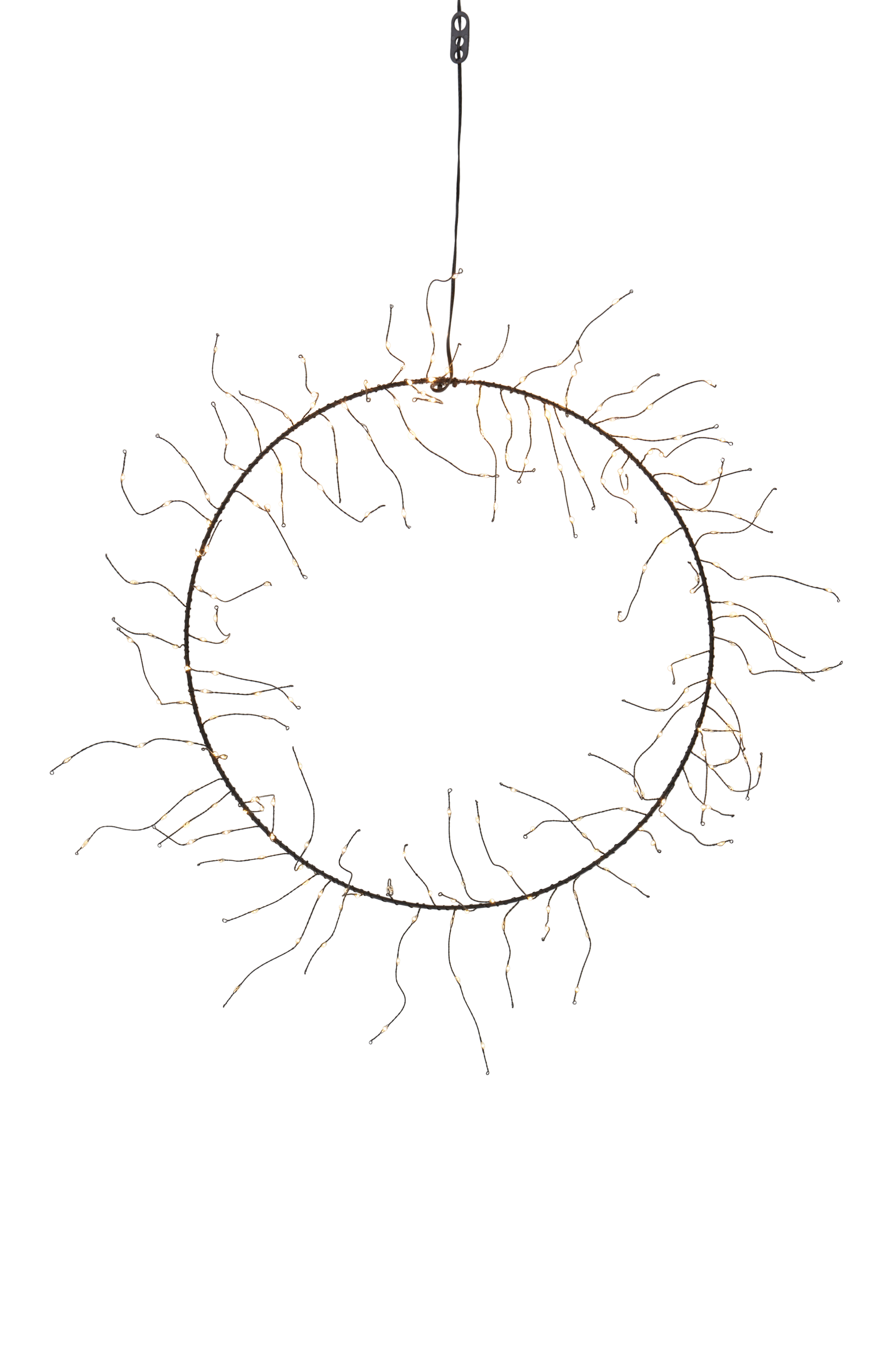 Kranssi vastasi kuvaa ja on juuri sopivan kokoinen ikkunaan. Valo on enemmän viileää sävyä kuin lämpimämpää keltaista.