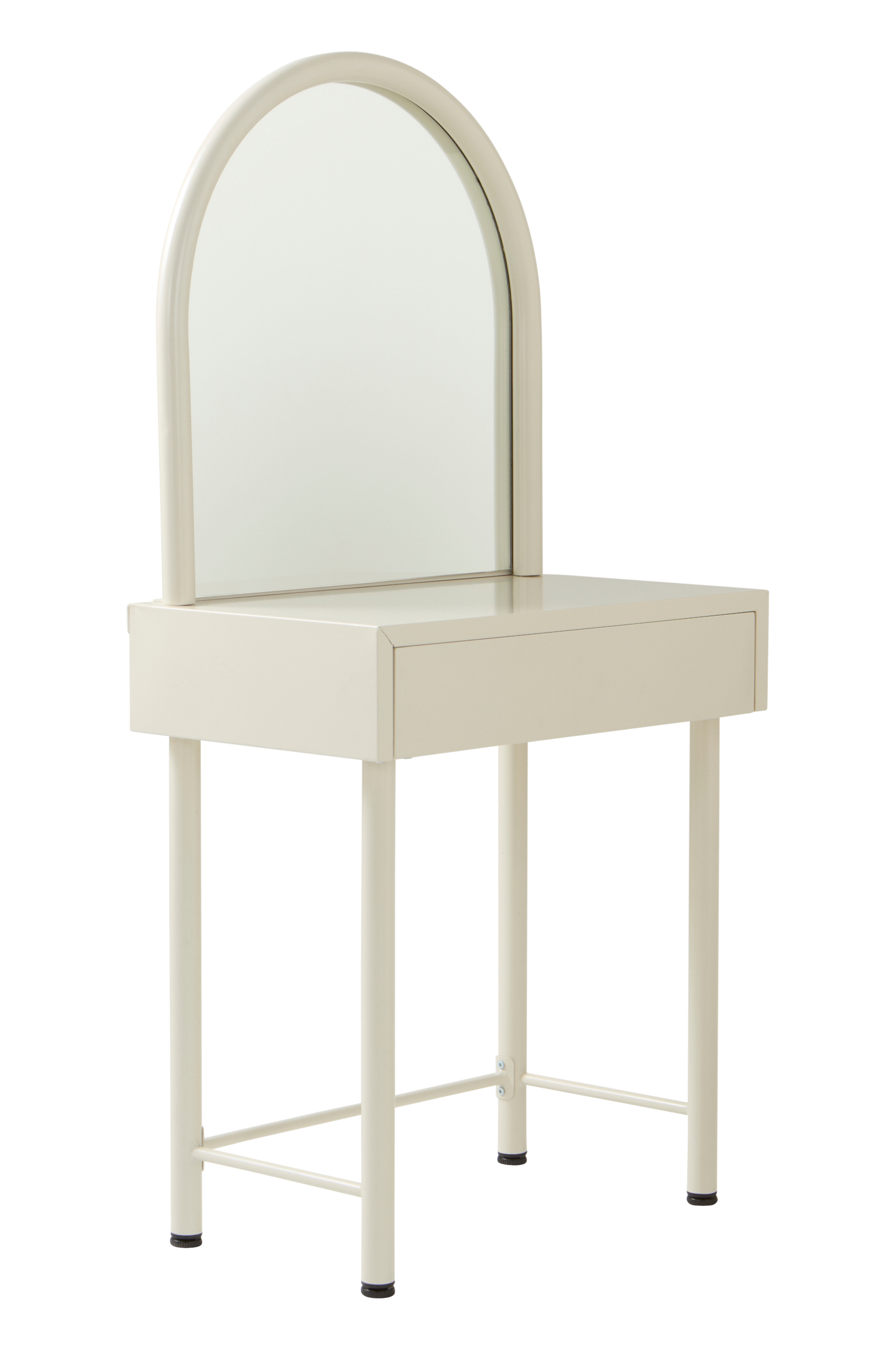 RUE-meikkipöydässä, joka sopii täydellisesti lastenhuoneeseen, yhdistyvät tyyli ja toiminnallisuus tyylikkäällä metallirungolla ja pulverimaalatuilla pinnoitteilla. Siinä on integroitu peili ja kätevä laatikko tarvikkeiden järjestämiseen, mikä tekee aamuista ilahduttavia.