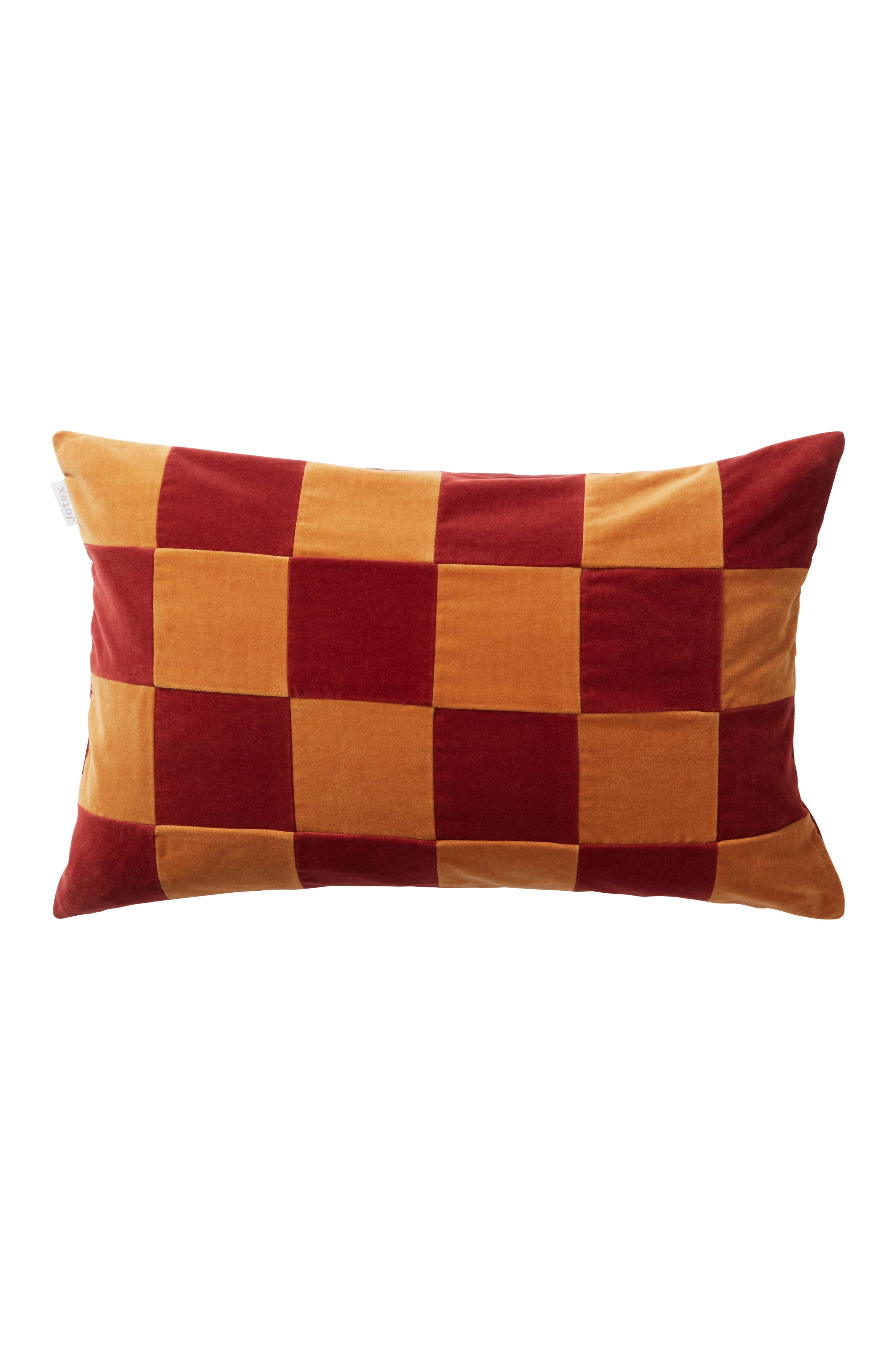 Tyynynpäällinen pehmeää mattapintaista puuvillasamettia. 1/pakkaus. Tyynynpäällisen etupuoli on ommeltu tilkkutäkkitekniikalla, ja shakkiruuduissa on huolella valitut sävyt. Sametti on kauniisti hohtavaa, ja ruudut hohtavat kauniisti valossa. Kangas on pesty erittäin pehmeän tunnun saamiseksi. Yksivärinen taustapuoli on samaa väriä kuin osa ruuduista. Piilovetoketju takana. Tyynynpäällisen vuori on polyesterimikrokuitua. Kankaan paino 230 g/m².