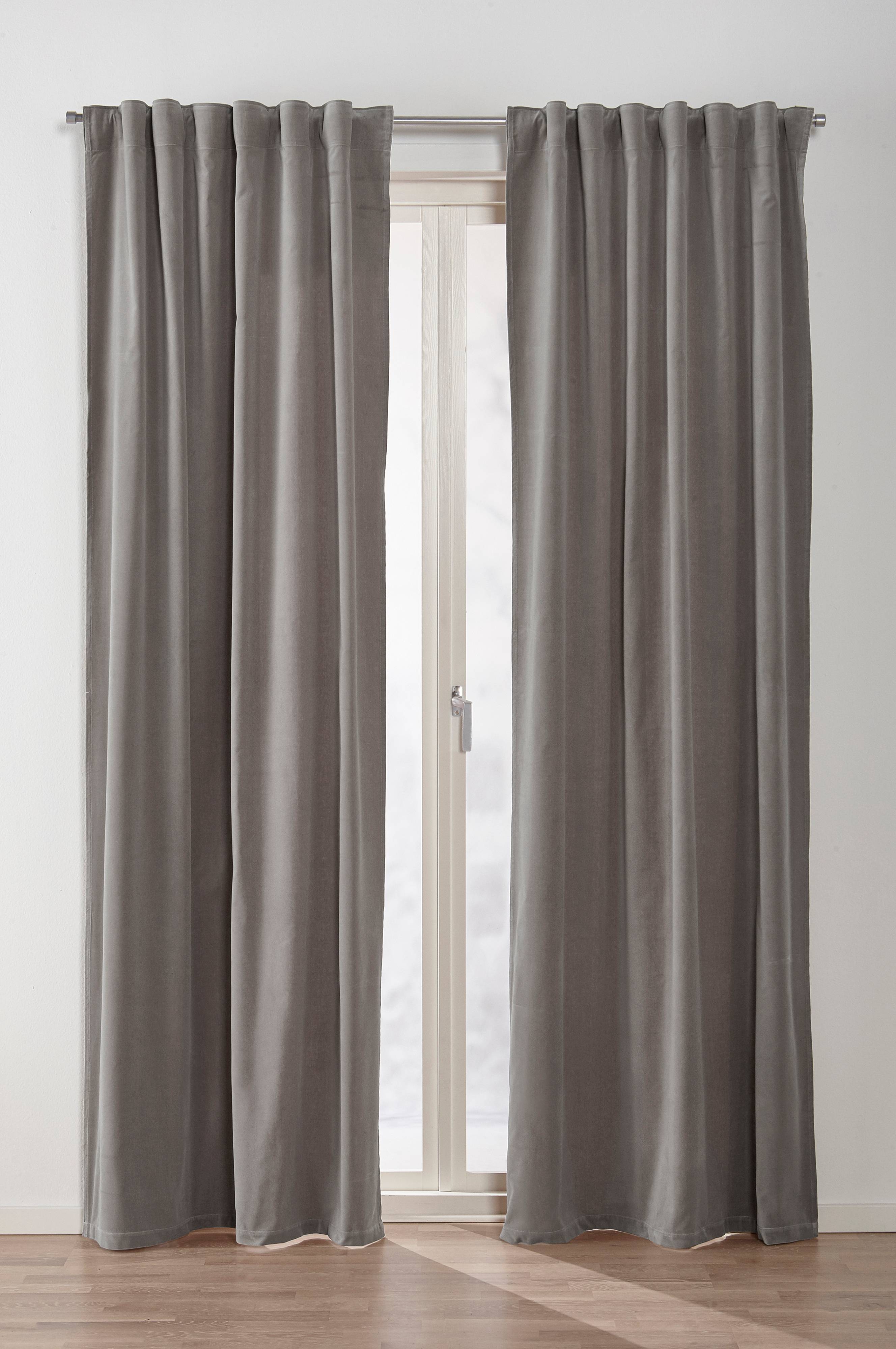 2 sivuverhoa yksiväristä puuvillasamettia. Päälleommeltu monitoiminauha. Monitoimiverhon voi ripustaa kahdella eri tavalla. Valitse kotiisi ja tyyliisi sopivin tapa. Voidaan ripustaa piilolenkkien avulla tai sormikoukuilla poimutusnauhaan.
