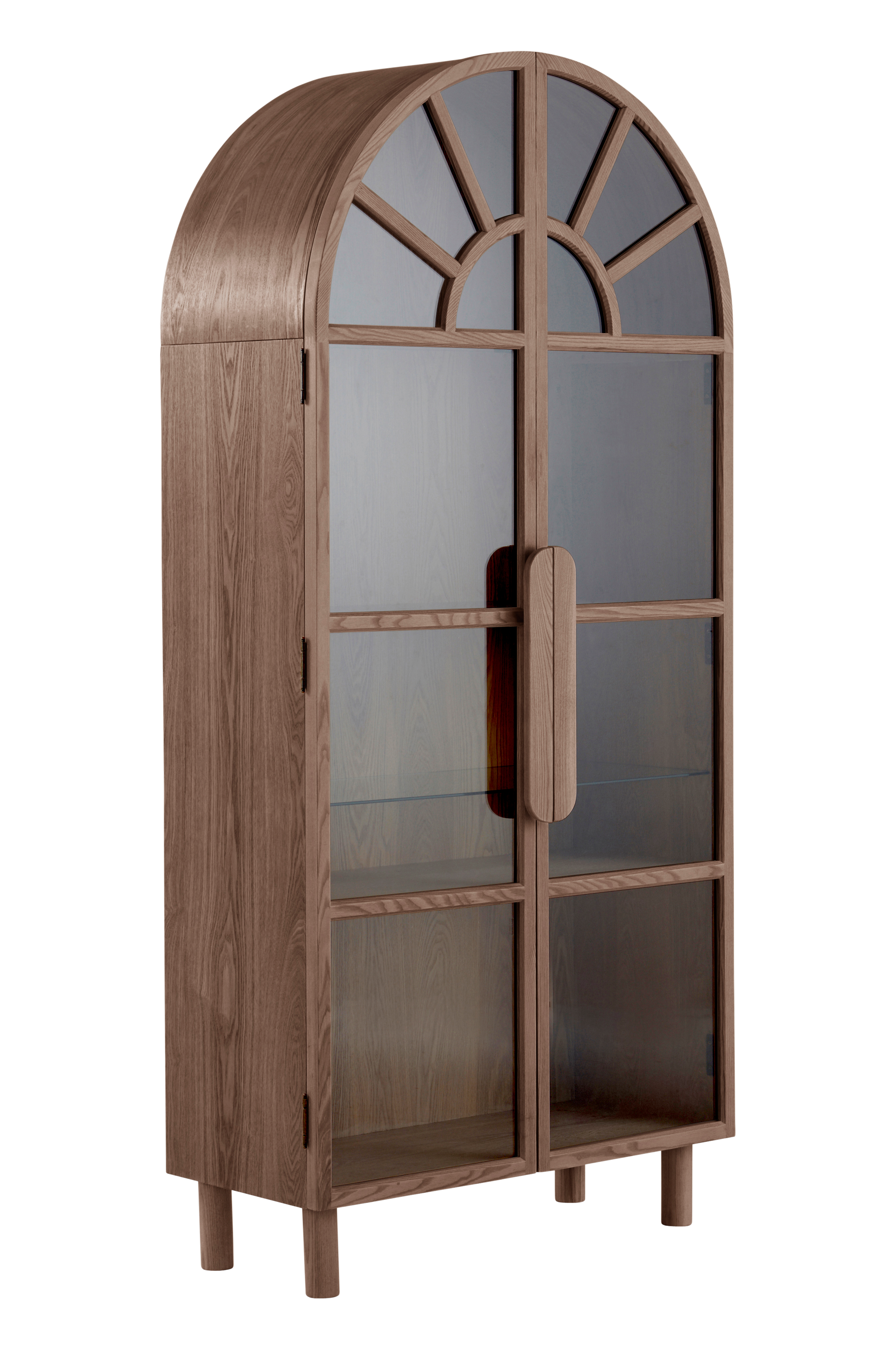 Vitriinikaappi saarnea ja MDF-levyä, joka on päällystetty saarniviilulla. Kaikki materiaali on FSC-sertifioitua ja käsitelty vesipohjaisella lakalla. Tyylikäs kaappi, jossa yläreunassa pyöristetty muoto ja kauniit jakokarmit kahdessa lasiovessa. SANDOR-kaapissa sisältö on esillä tyylikkäällä tavalla. Pyöristetty kaari ylhäällä, ovissa kahvat ja jalat massiivisaarnea. Sivut, pohja, takaosa ja hyllyt saarniviilutettua MDF-levyä. Kaapissa on neljä hyllytasoa, kolme kiinteää hyllytasoa on MDF-levyä ja yksi siirrettävä lasihylly. Seinäkiinnike takana. Osittain koottava. Kokoamisohje mukana.