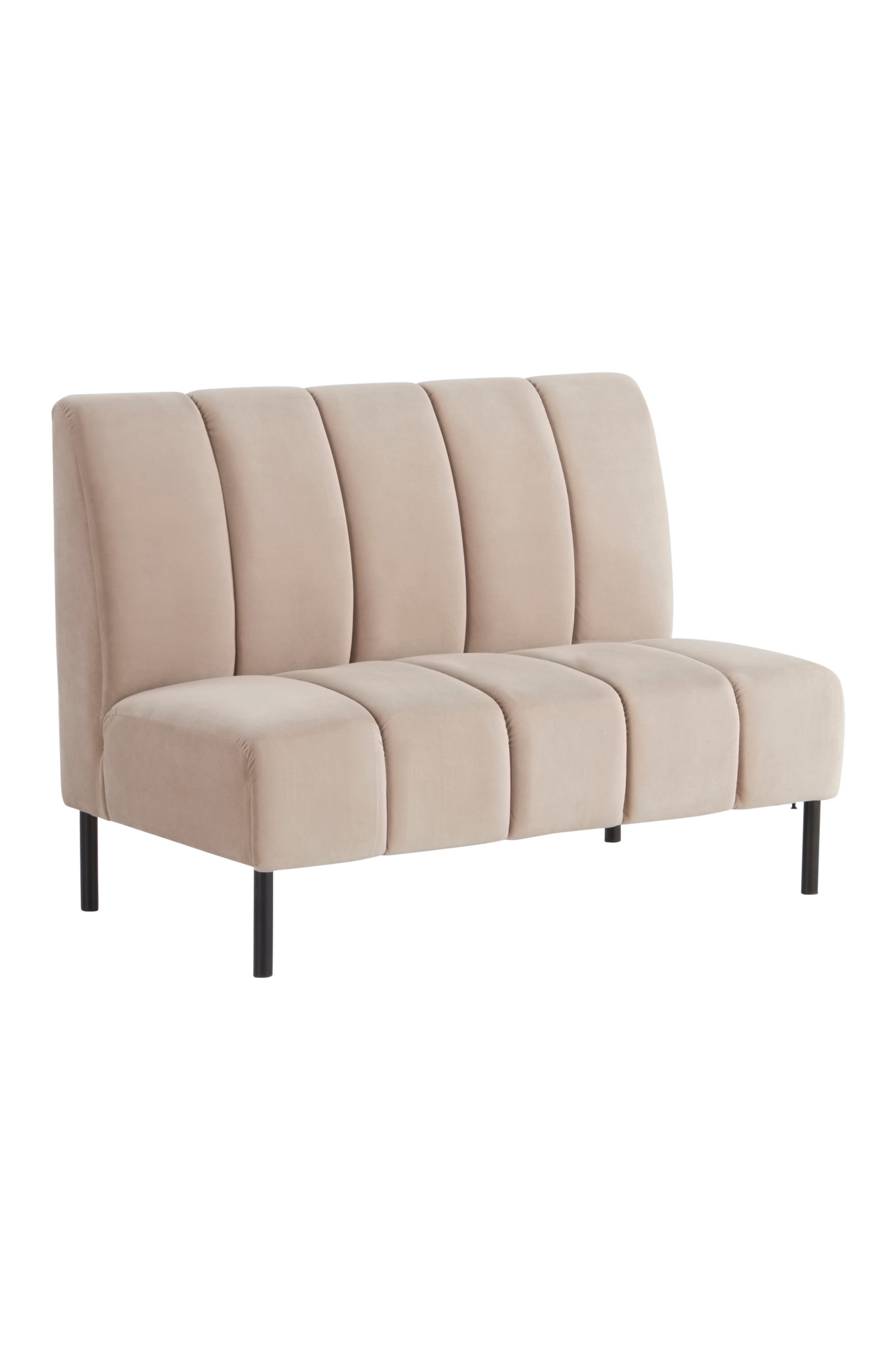 Tyylikäs samettipäällinen kierrätettyä polyesteriä. Martindale-arvo 40 000. Runko on vaneria ja mäntyä, kaikki puu on FSC-sertifioitua. Sohvassa on siksak-jousitus yhdistettynä vaahtomuovi- ja polyesteripehmusteeseen, mikä tekee siitä erityisen mukavan istua. Pyöreät metallijalat on jauhemaalattu mustiksi. Mikäli ostat useita moduuleja, ne kootaan yhteen mukana tulevien metallikiinnikkeiden avulla. Päällistä ei voi irrottaa. Osittain koottava. Kokoamisohje mukana.