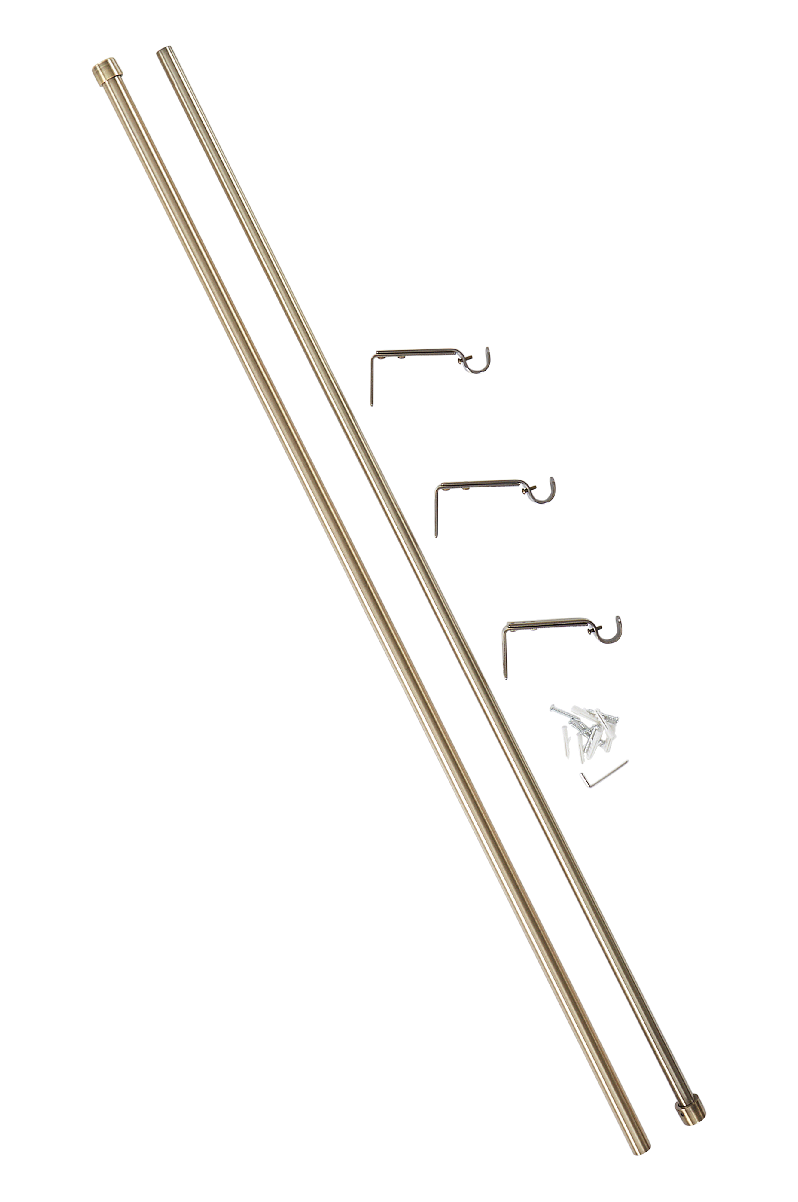 Koko: Halkaisija 19 mm. Pituus 120-210 cm. Etäisyys seinästä 10-15 cm. Kannattimen leveys 16 mm.