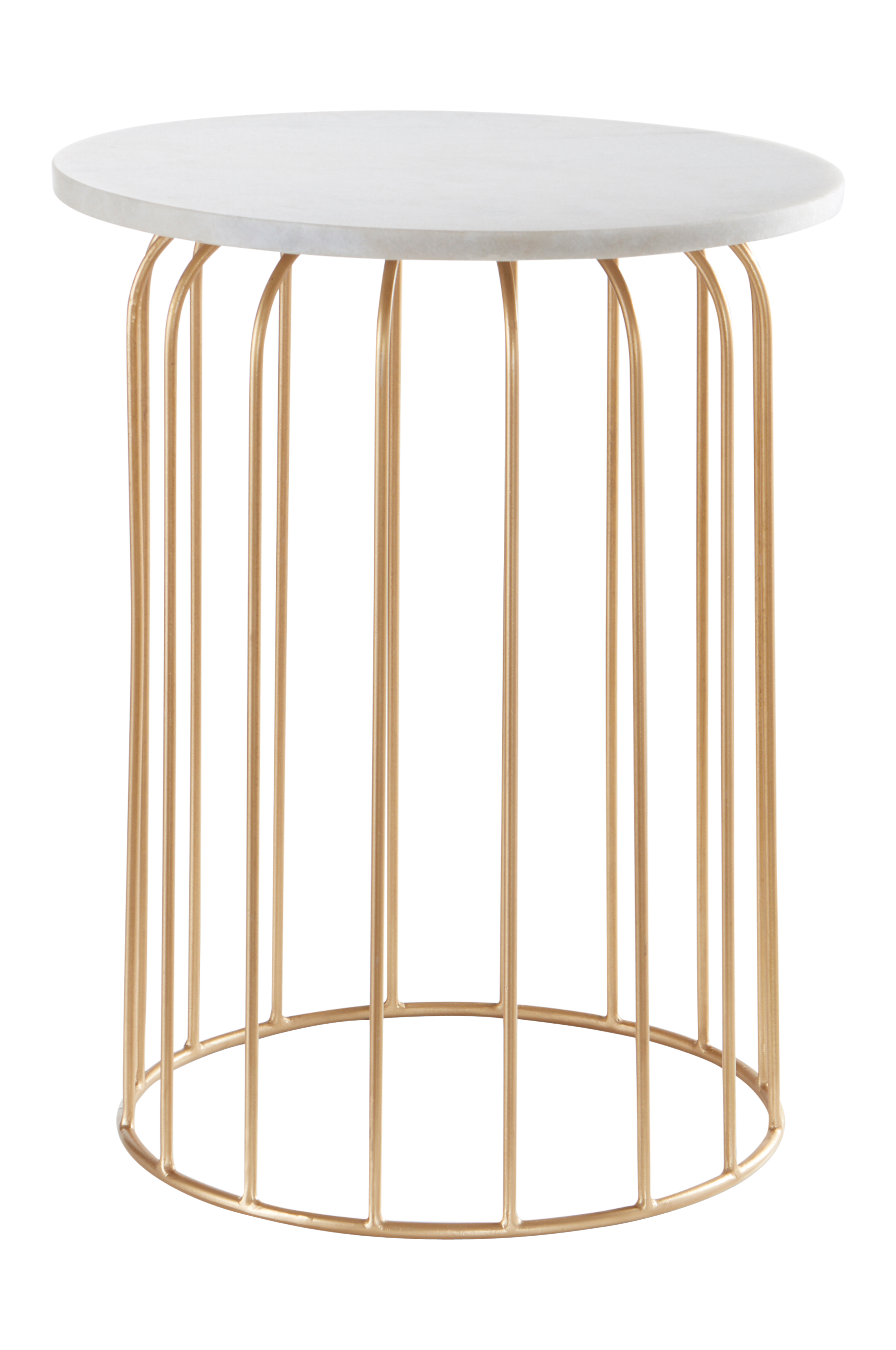Pyöreä sivupöytä, jonka jalusta rautaa ja kaunis pöytälevy marmoria. Pöydästä on saatavana kaksi vaihtoehtoa. Toisessa on messinginvärinen päällyste jalustassa ja valkoinen marmoripöytälevy, toisessa on mustaksi maalattu jalusta ja musta marmoripöytälevy. Pöydän muotoilu luo kevyen ja ilmavan vaikutelman. Marmori on aina yhtä kaunis. Klassinen valinta, joka sopii yhtä hyvin moderniin ja retrohenkiseen kotiin. Marmori on luonnonkivi, jonka kuvio vaihtelee aina hieman kivilajin koostumuksen mukaan. Tämä tekee jokaisesta huonekalusta yksilöllisen.