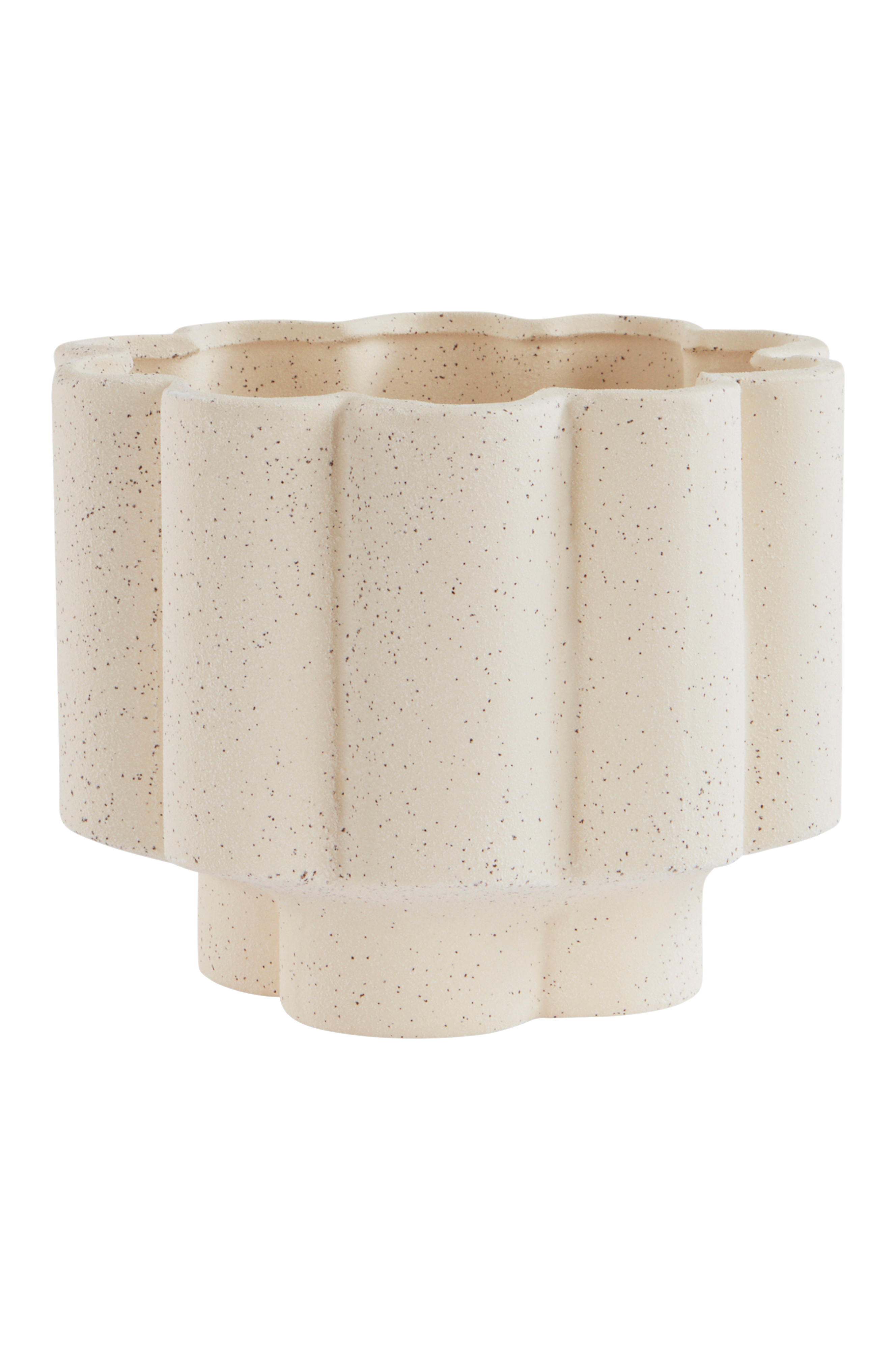 Yksivärinen kukan muotoinen keramiikkaruukku, jossa kiveä muistuttava viimeistely. Keskellä oleva jalka kohottaa ruukun muutaman senttimetrin irti alustasta. Ruukku on lasitettu käsin. Myös sisäpinta on lasitettu. Hieno käsityö tekee jokaisesta ruukusta ainutlaatuisen. Keramiikka voi päästää kosteutta läpi.